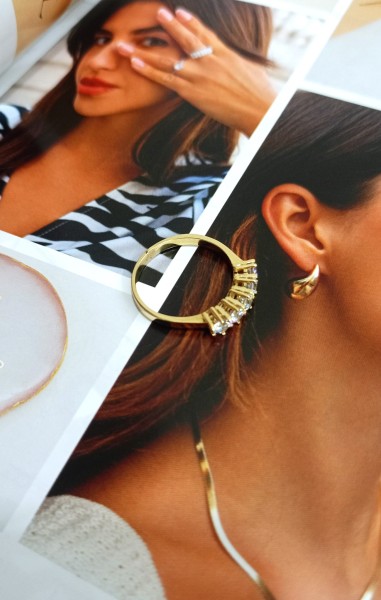 Przedmiotem sprzedaży jest pierścionek, wykonany z 14-karatowego (p.585), żółtego złota.