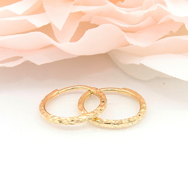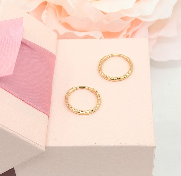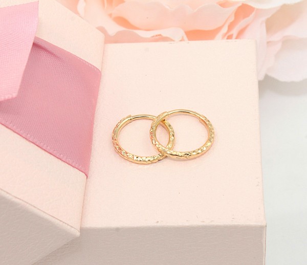 Przedmiotem sprzedaży są kolczyki wykonane z 14-karatowego(p.585),żółtego złota - koła, grawerowane na froncie.