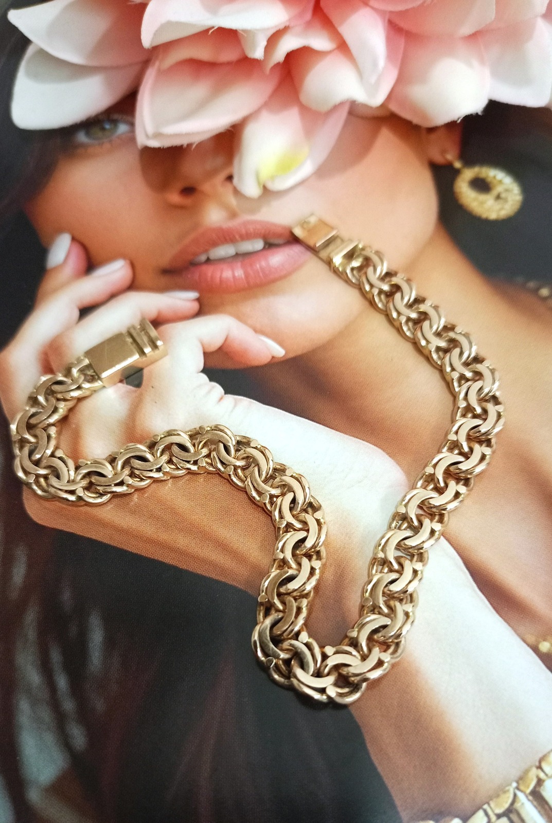Oferujemy na sprzedaż złotą bransoletkę wykonaną z 14-karatowego (p.585) różowego złota.
