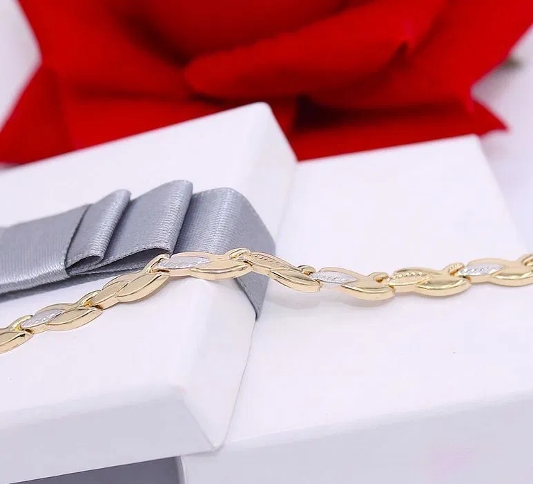 Oferujemy na sprzedaż złotą bransoletkę wykonaną z 14-karatowego (p.585) żółtego i białego złota.