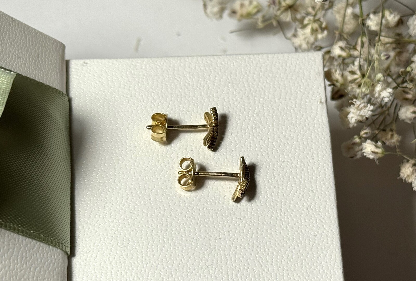 Oferujemy na sprzedaż złote kolczyki wykonane z 14-karatowego (p.585) żółtego złota.