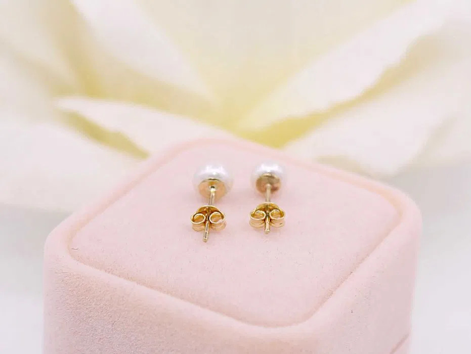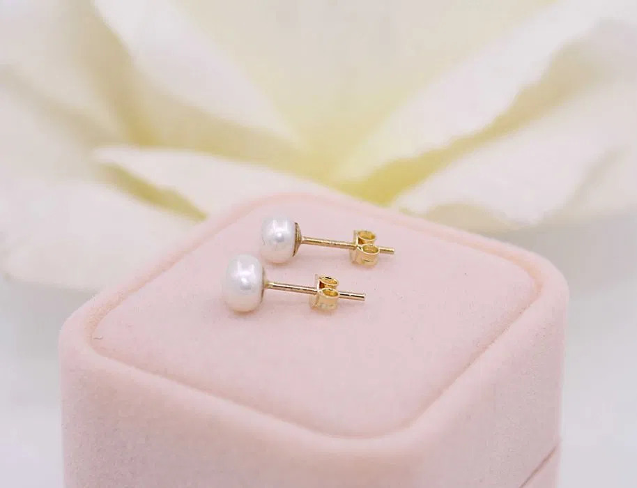 Oferujemy na sprzedaż złote kolczyki z perełkami, wykonane z 14-karatowego (p.585) żółtego złota.