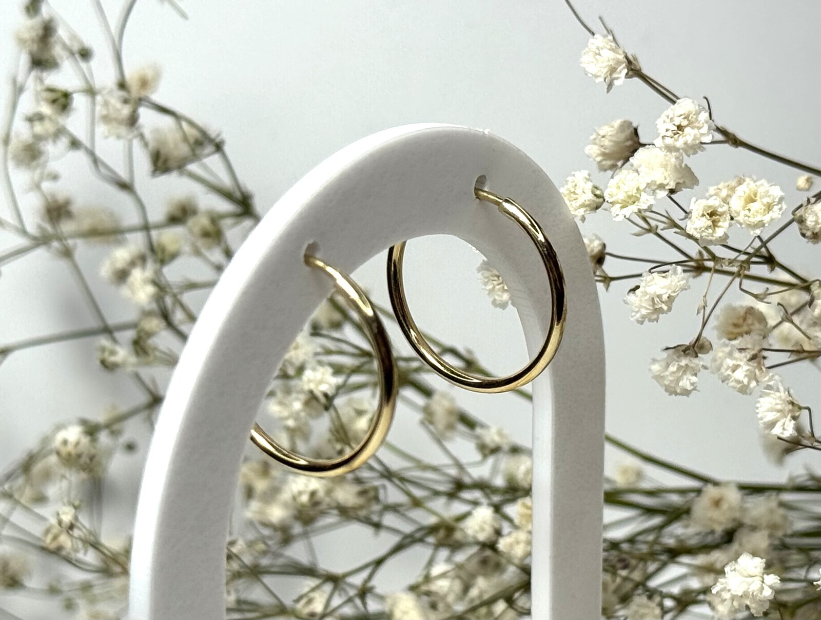 Oferujemy na sprzedaż złote kolczyki wykonane z 14-karatowego (p.585) żółtego złota.