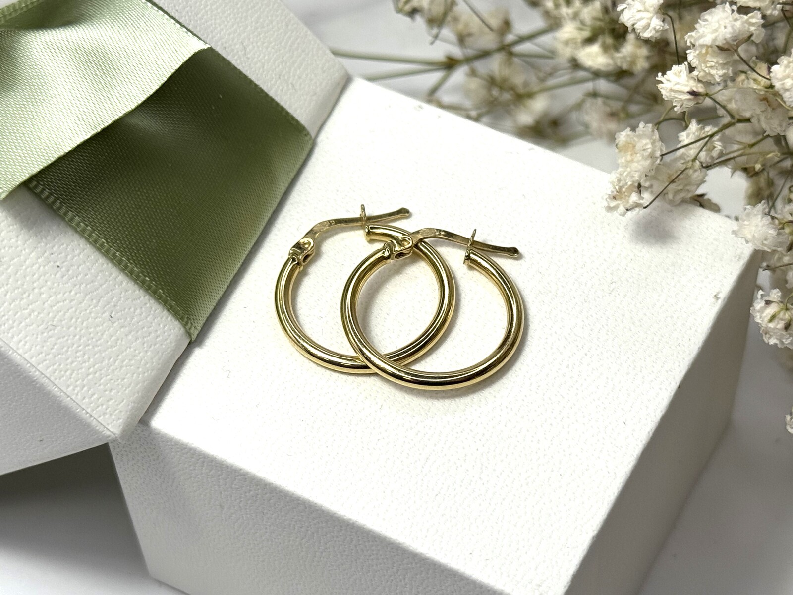 Oferujemy na sprzedaż złote kolczyki wykonane z 14-karatowego (p.585) żółtego złota.