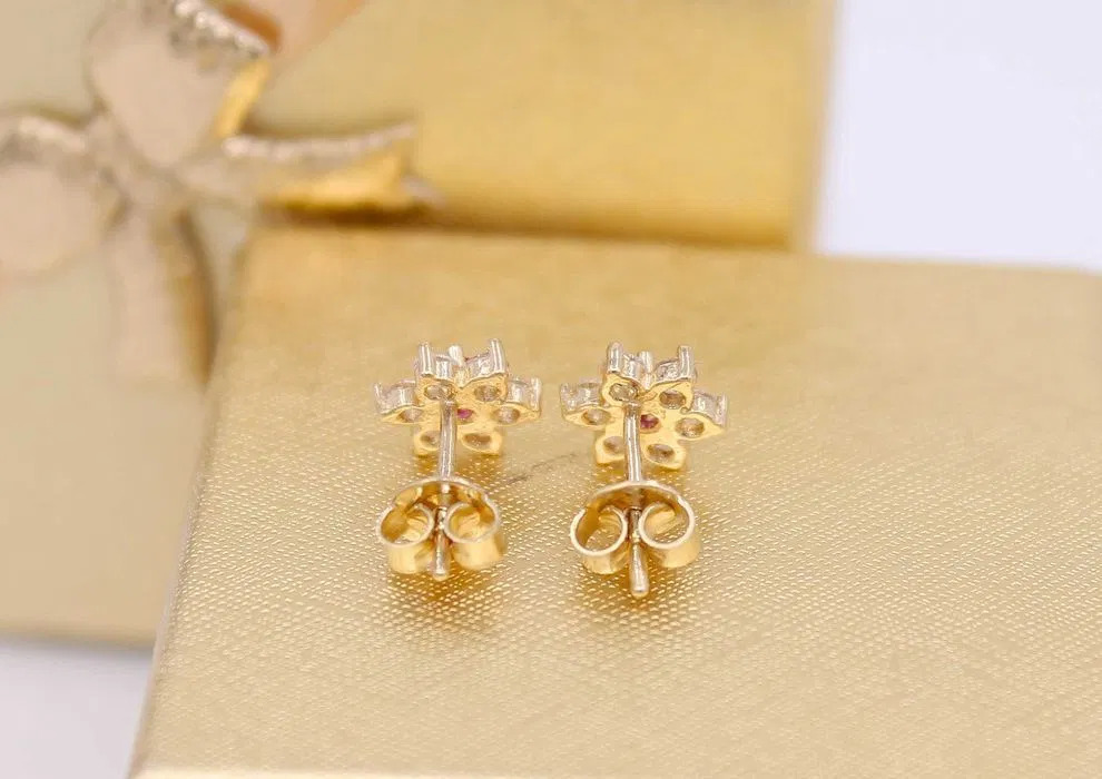 Oferujemy na sprzedaż złote kolczyki, wykonane z 14-karatowego (p.585) żółtego złota.