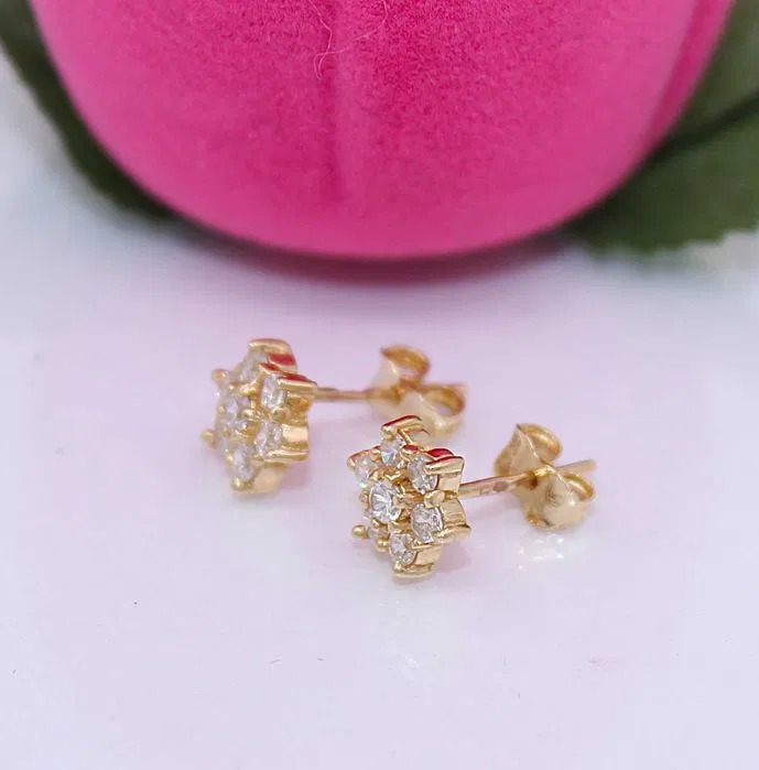 Oferujemy na sprzedaż złote kolczyki, wykonane z 14-karatowego (p.585) żółtego złota.