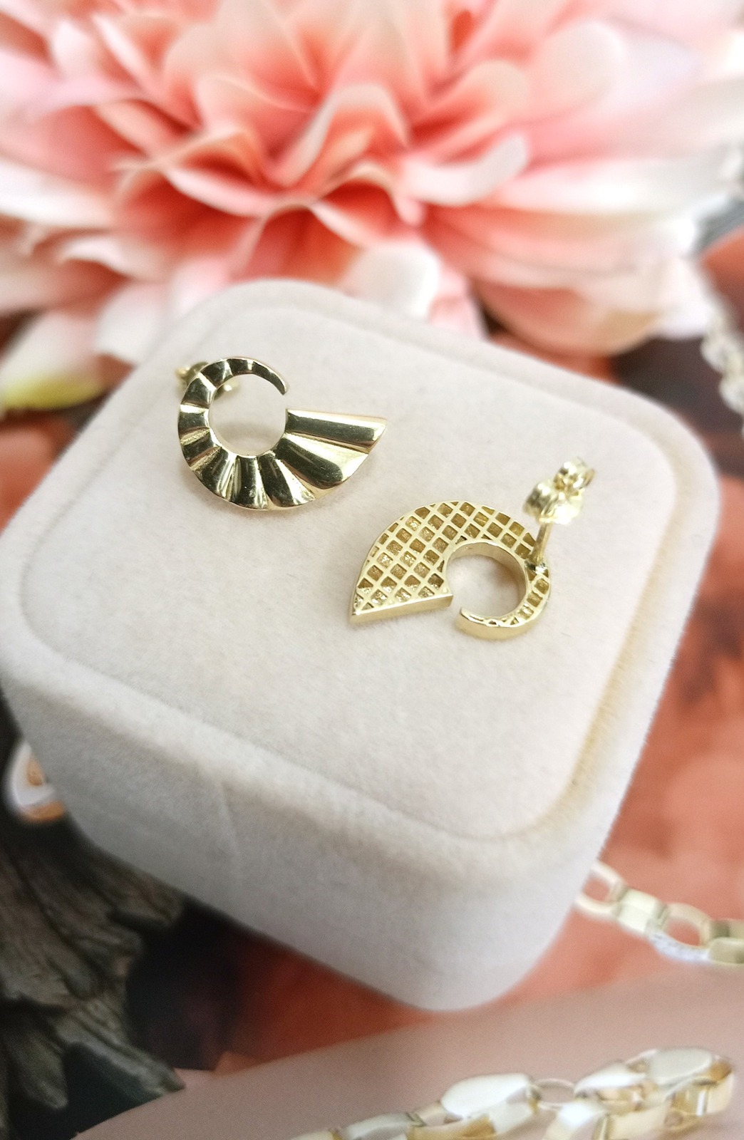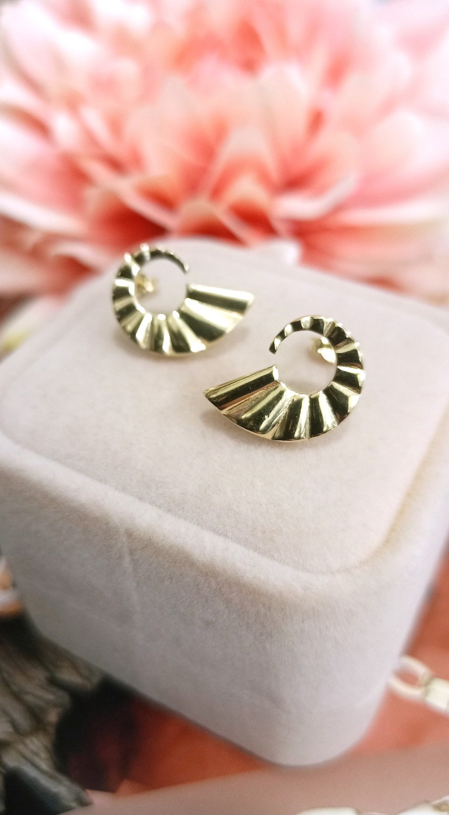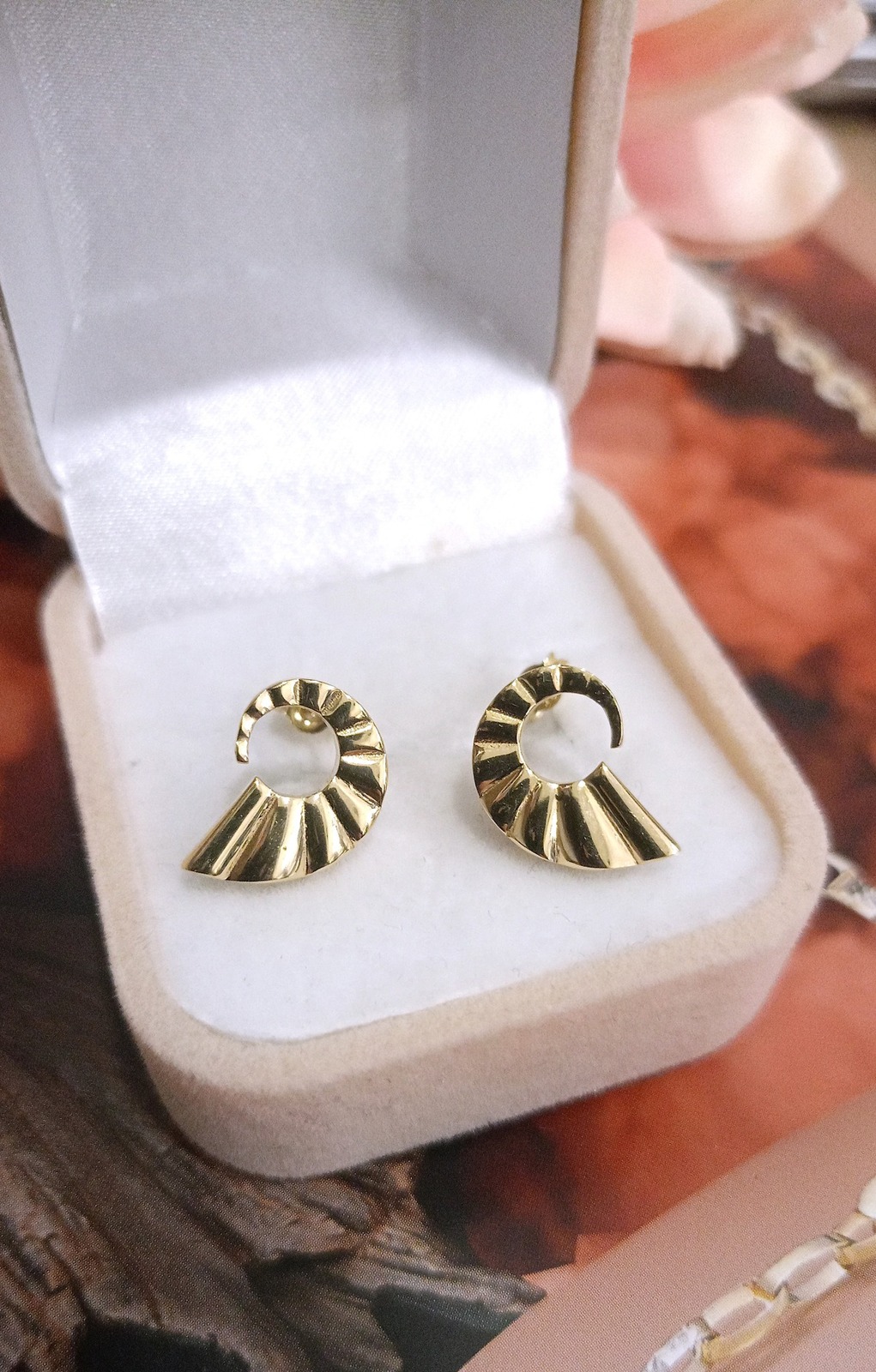 Oferujemy na sprzedaż złote kolczyki wykonane z 14-karatowego (p.585) żółtego złota.