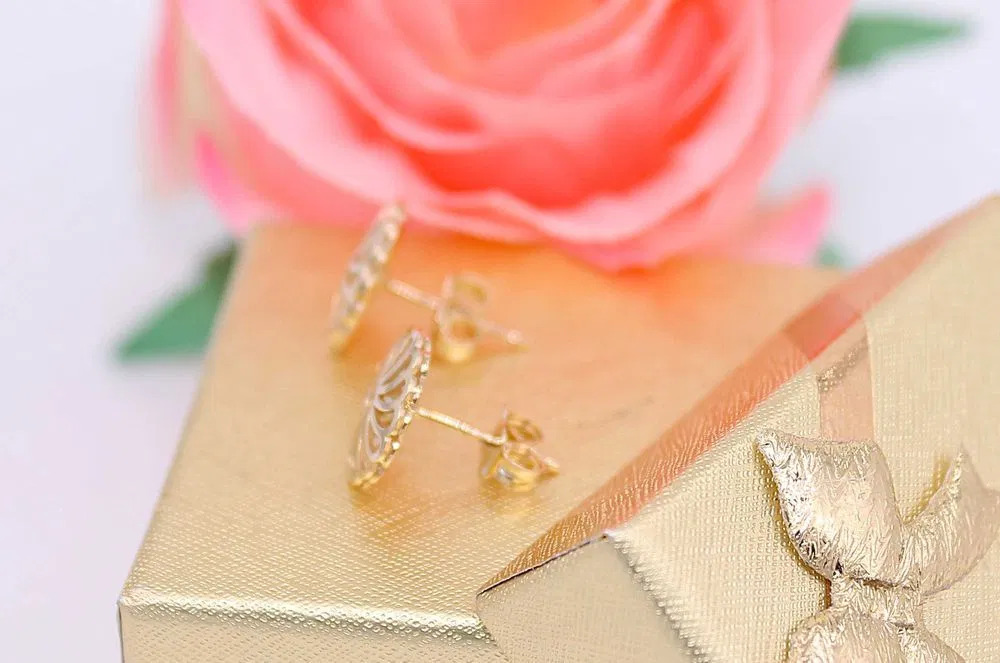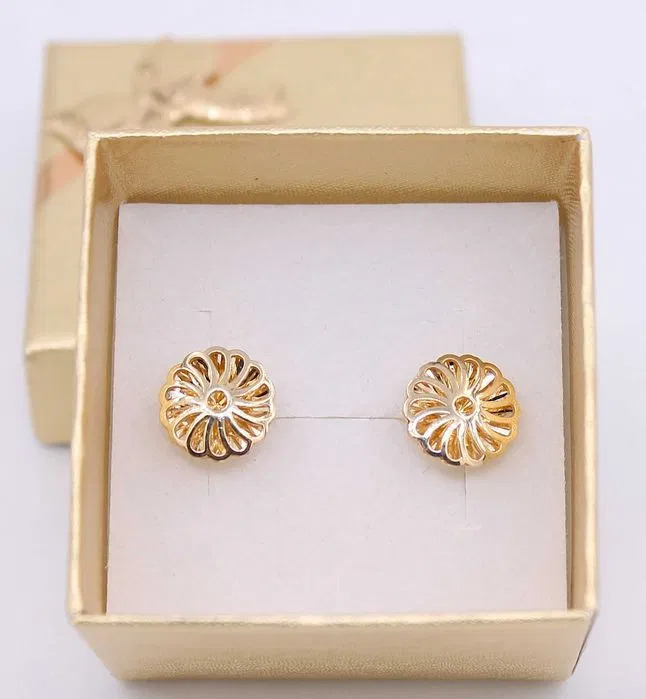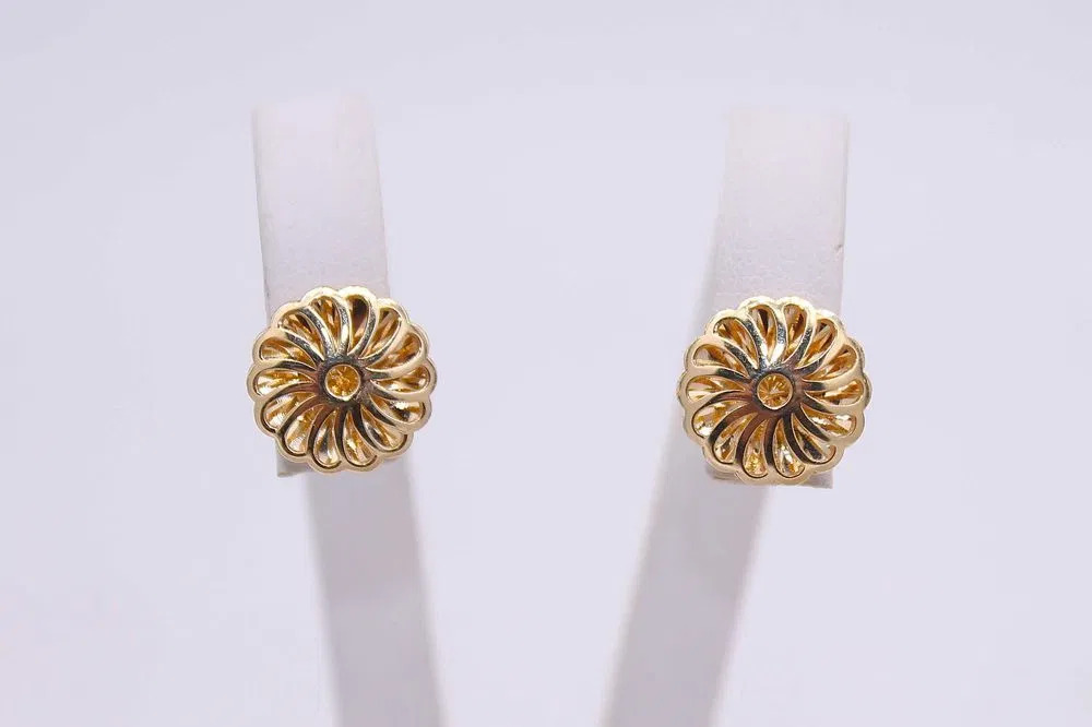 Oferujemy na sprzedaż złote kolczyki, wykonane z 14-karatowego (p.585) żółtego złota.