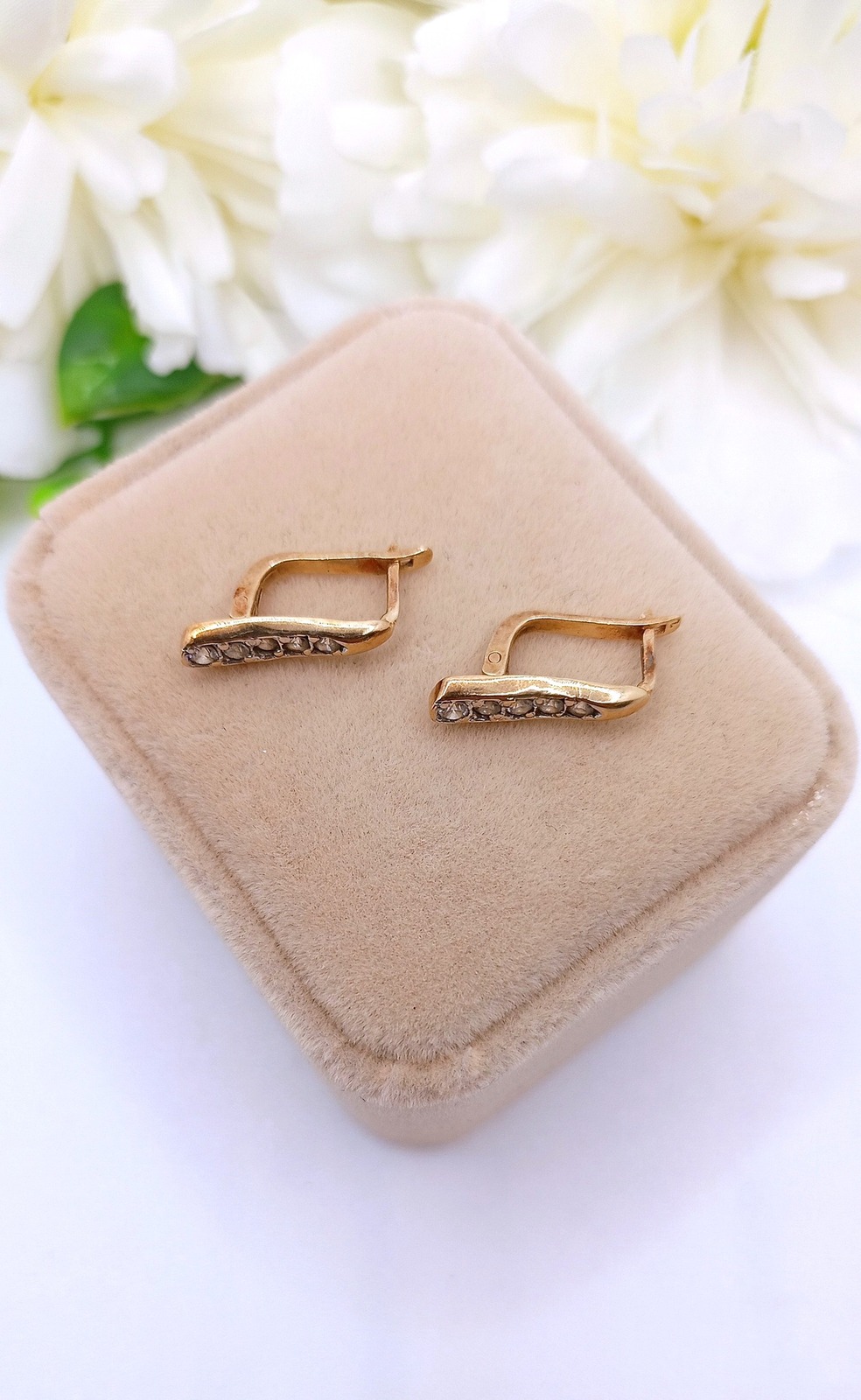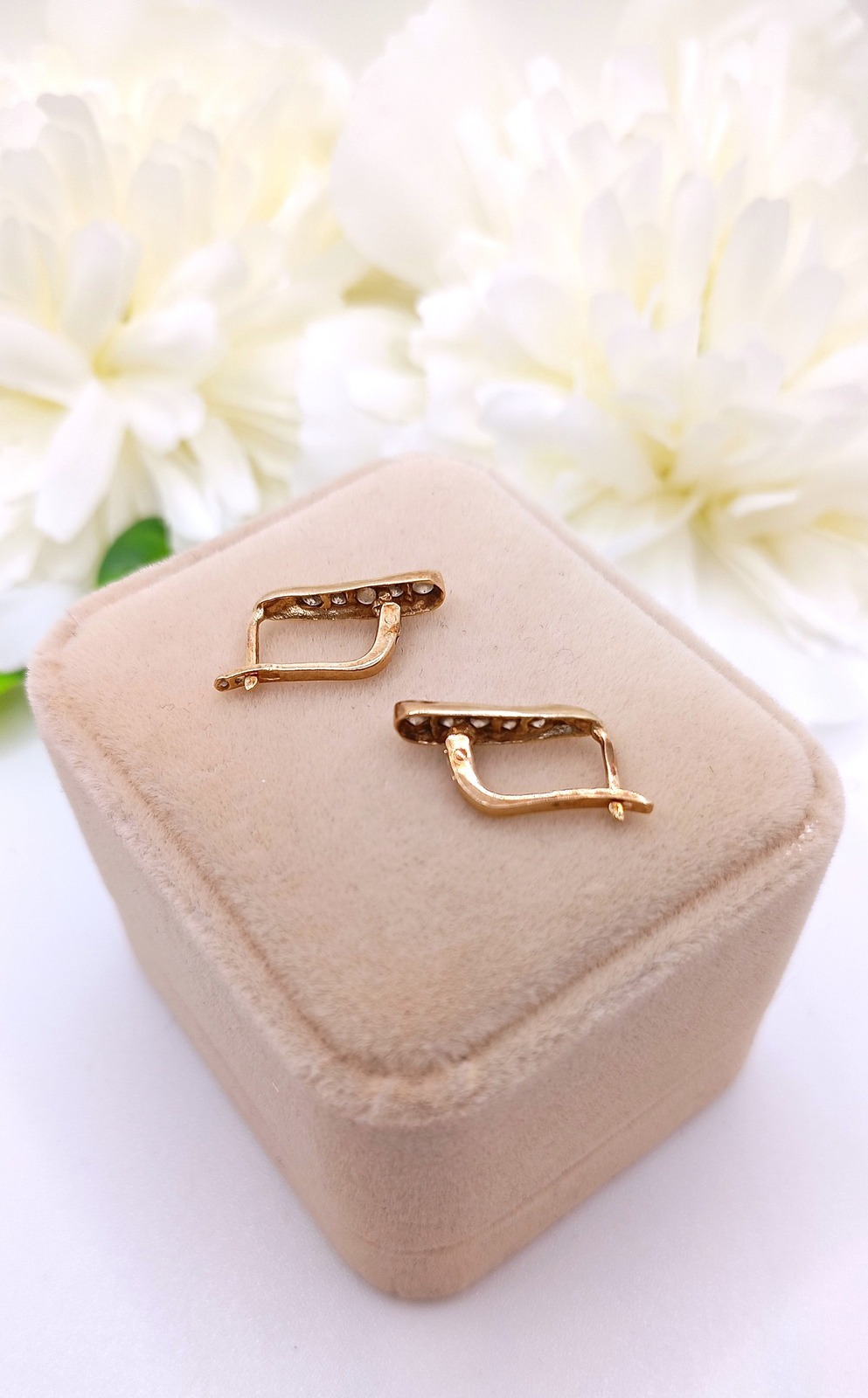 Oferujemy na sprzedaż złote kolczyki wykonane z 14-karatowego (p.585) żółtego złota.