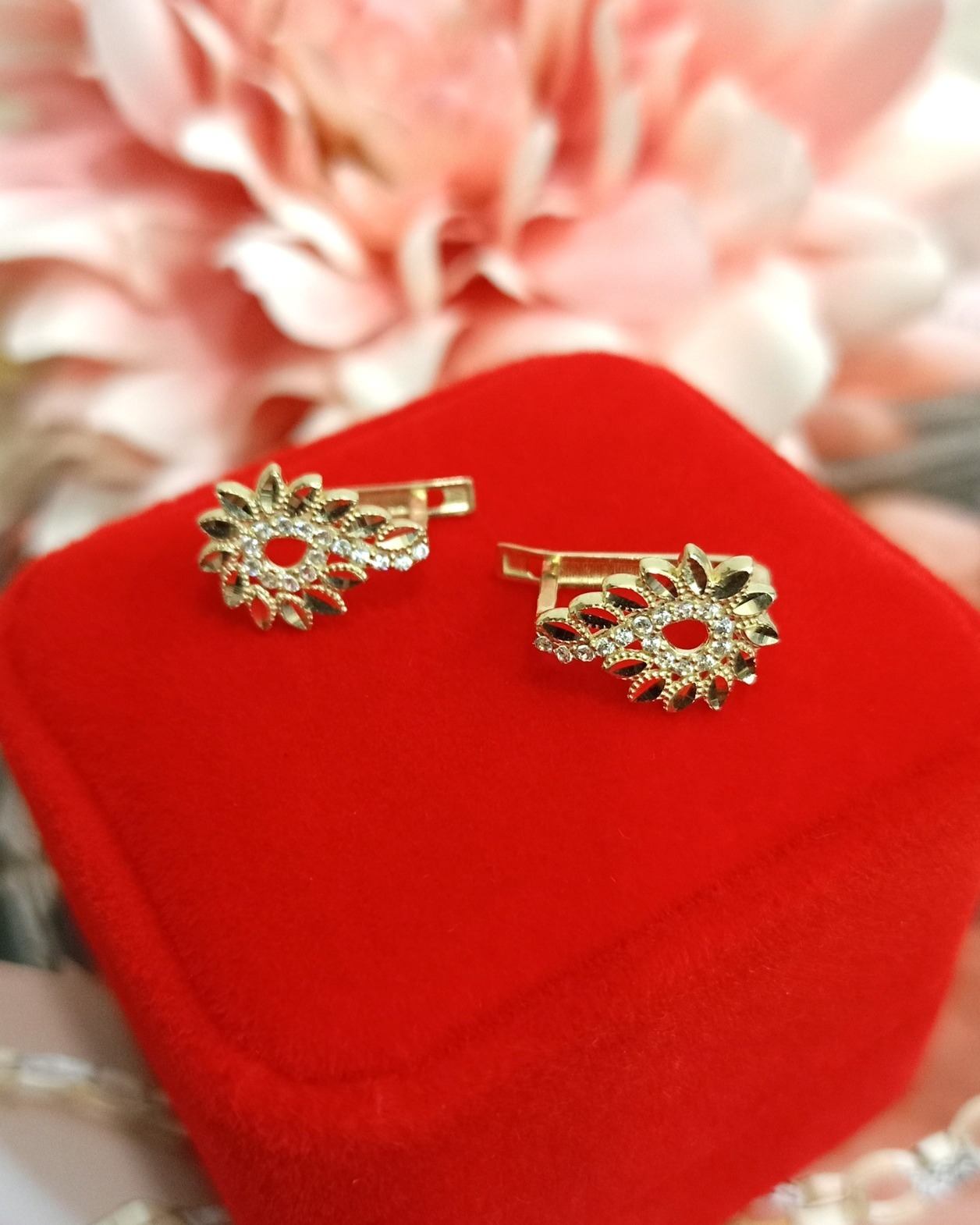 Oferujemy na sprzedaż złote kolczyki wykonane z 14-karatowego (p.585) żółtego złota.