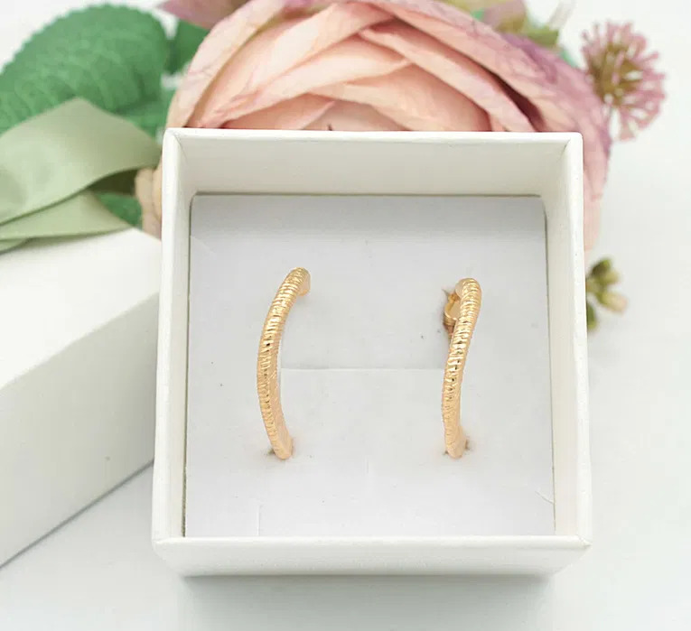 Oferujemy na sprzedaż złote kolczyki, wykonane z 14-karatowego (p.585) żółtego złota.