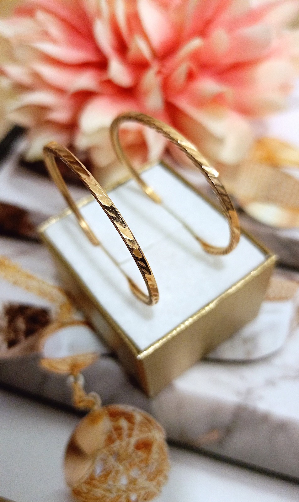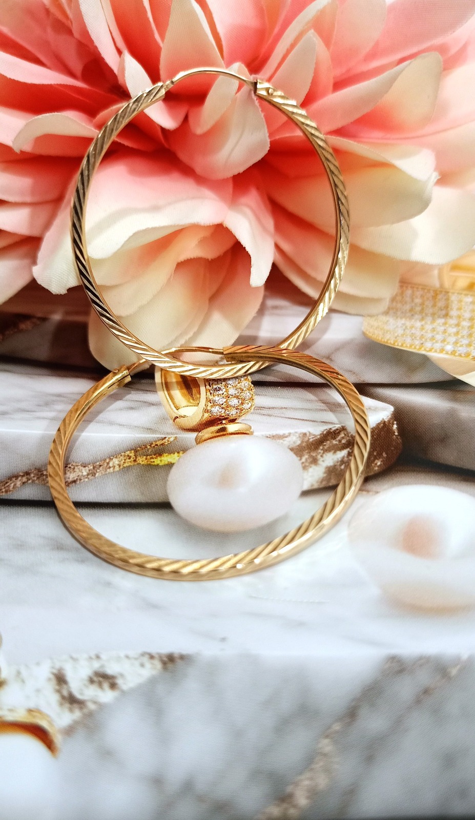 Oferujemy na sprzedaż złote kolczyki wykonane z 14-karatowego (p.585) różowego złota.