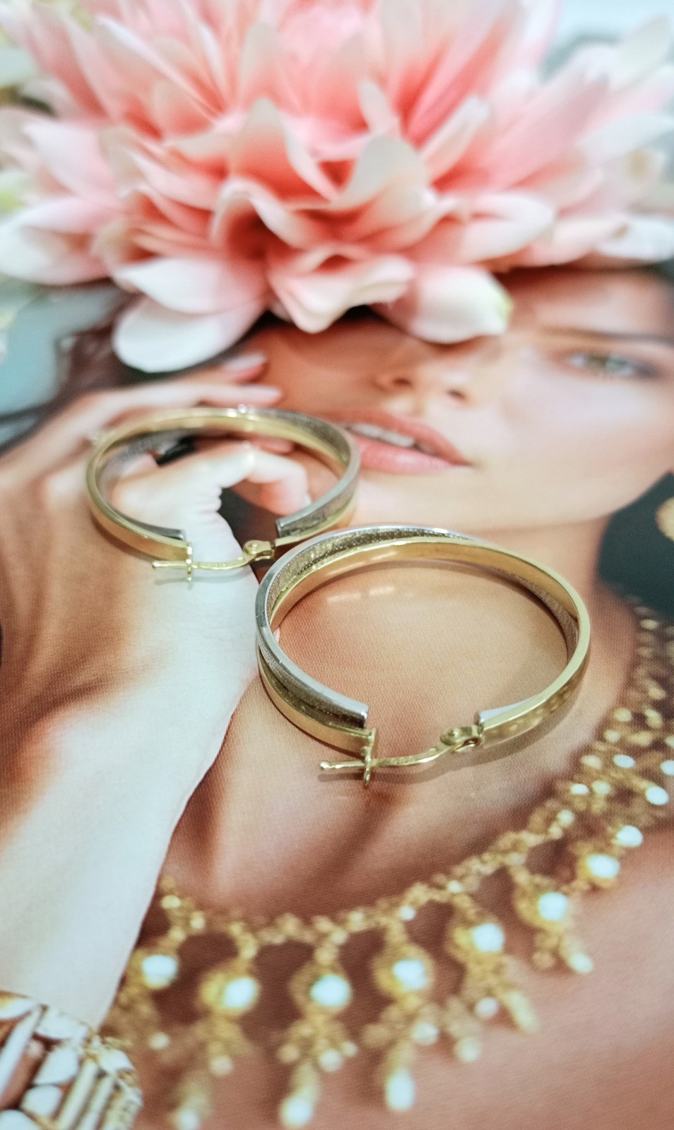 Oferujemy na sprzedaż złote kolczyki wykonane z 14-karatowego (p.585) żółtego i białego złota.