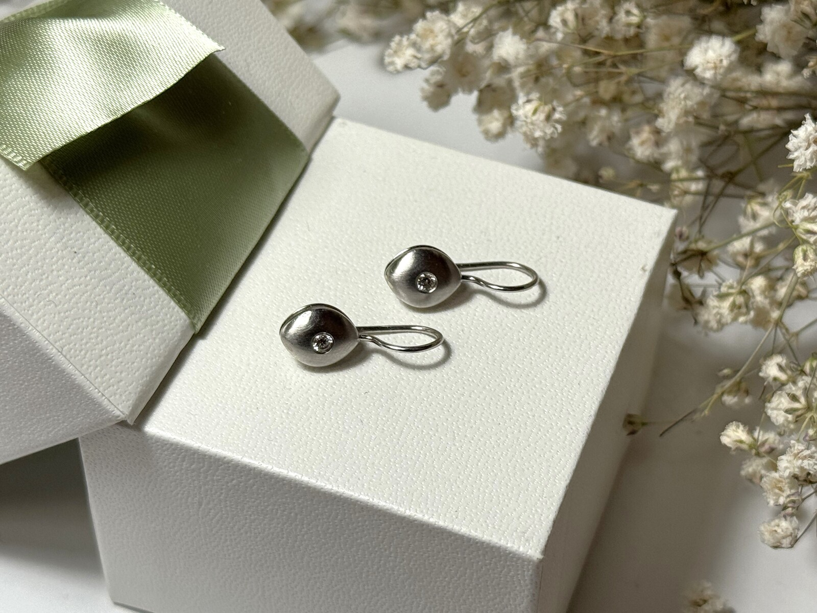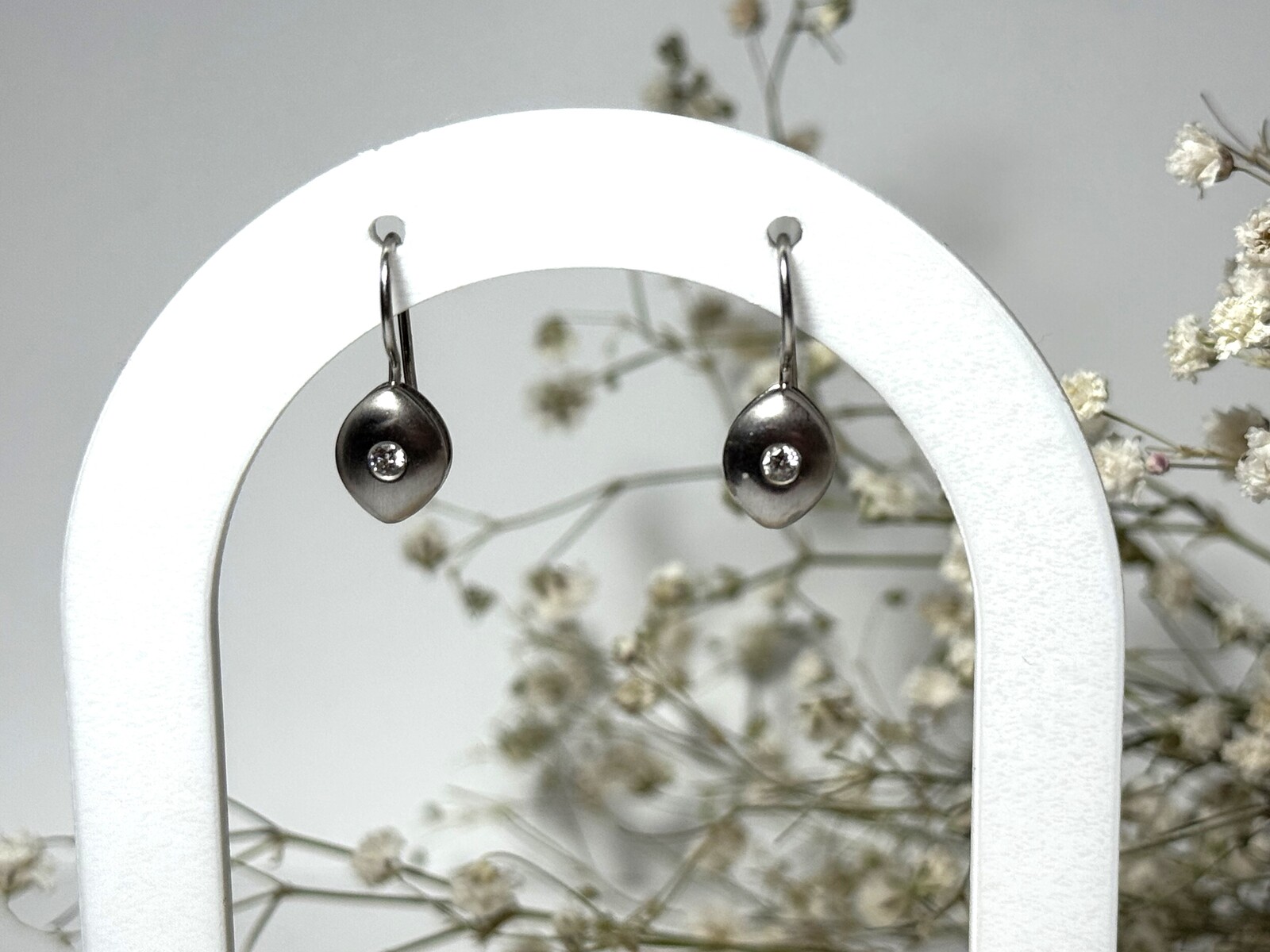 Oferujemy na sprzedaż złote kolczyki wykonane z 14-karatowego (p.585) białego złota.
