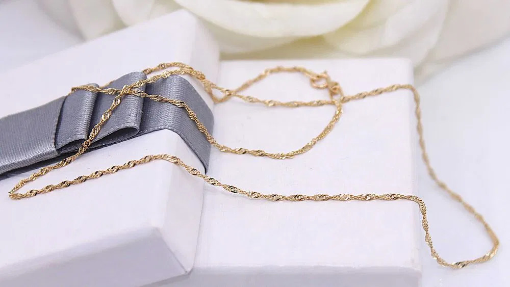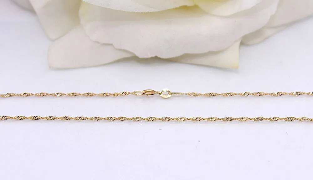 Oferujemy na sprzedaż złoty łańcuszek - splot Singapur, wykonany z 14-karatowego (p.585) żółtego złota.
