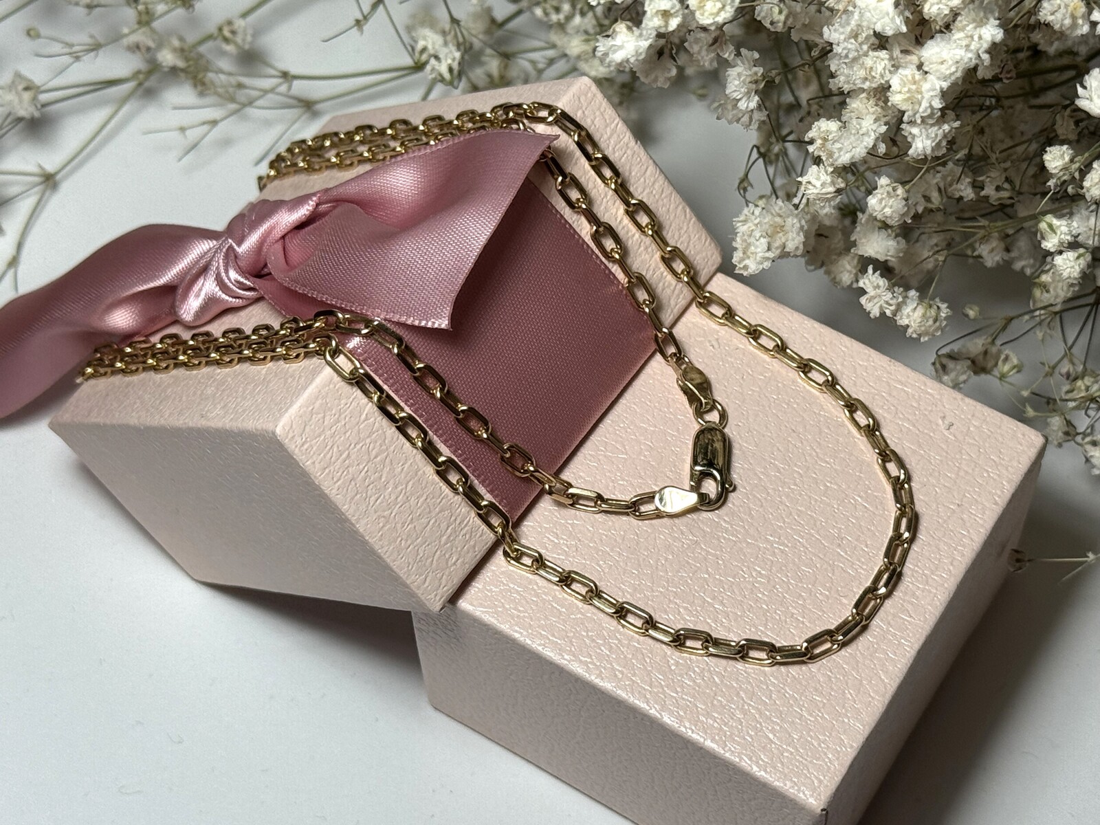 Oferujemy na sprzedaż złoty naszyjnik wykonany z 14-karatowego (p.585) żółtego złota.