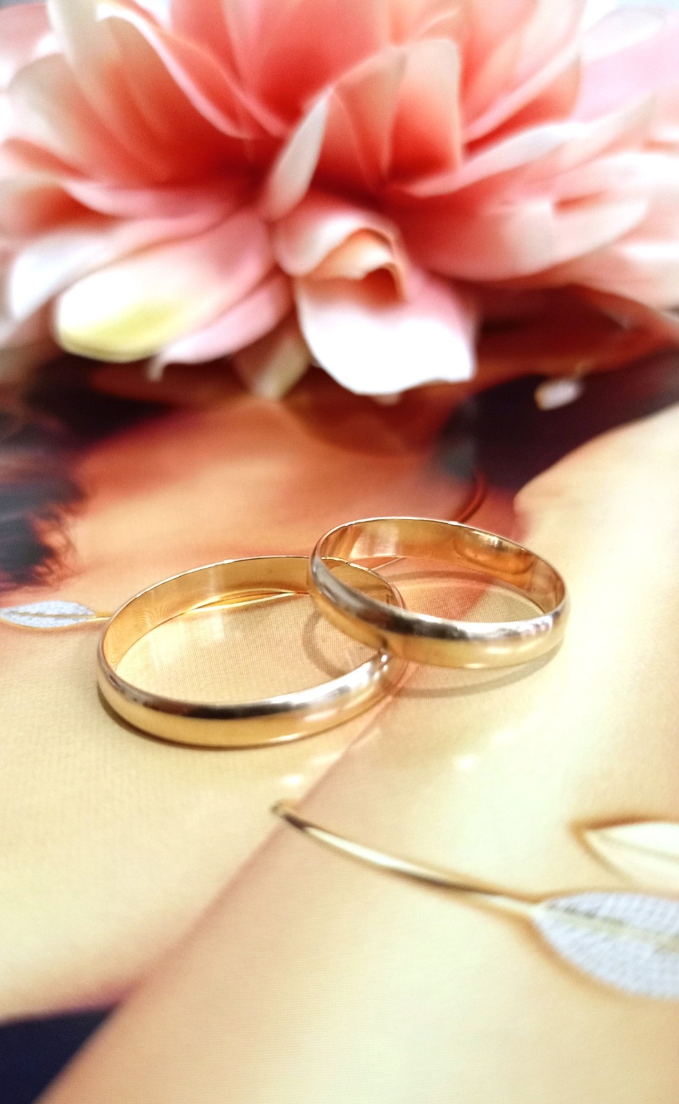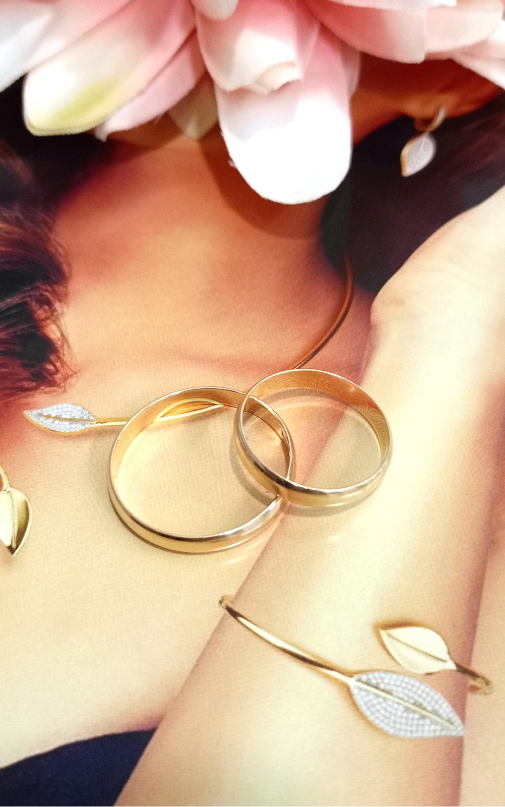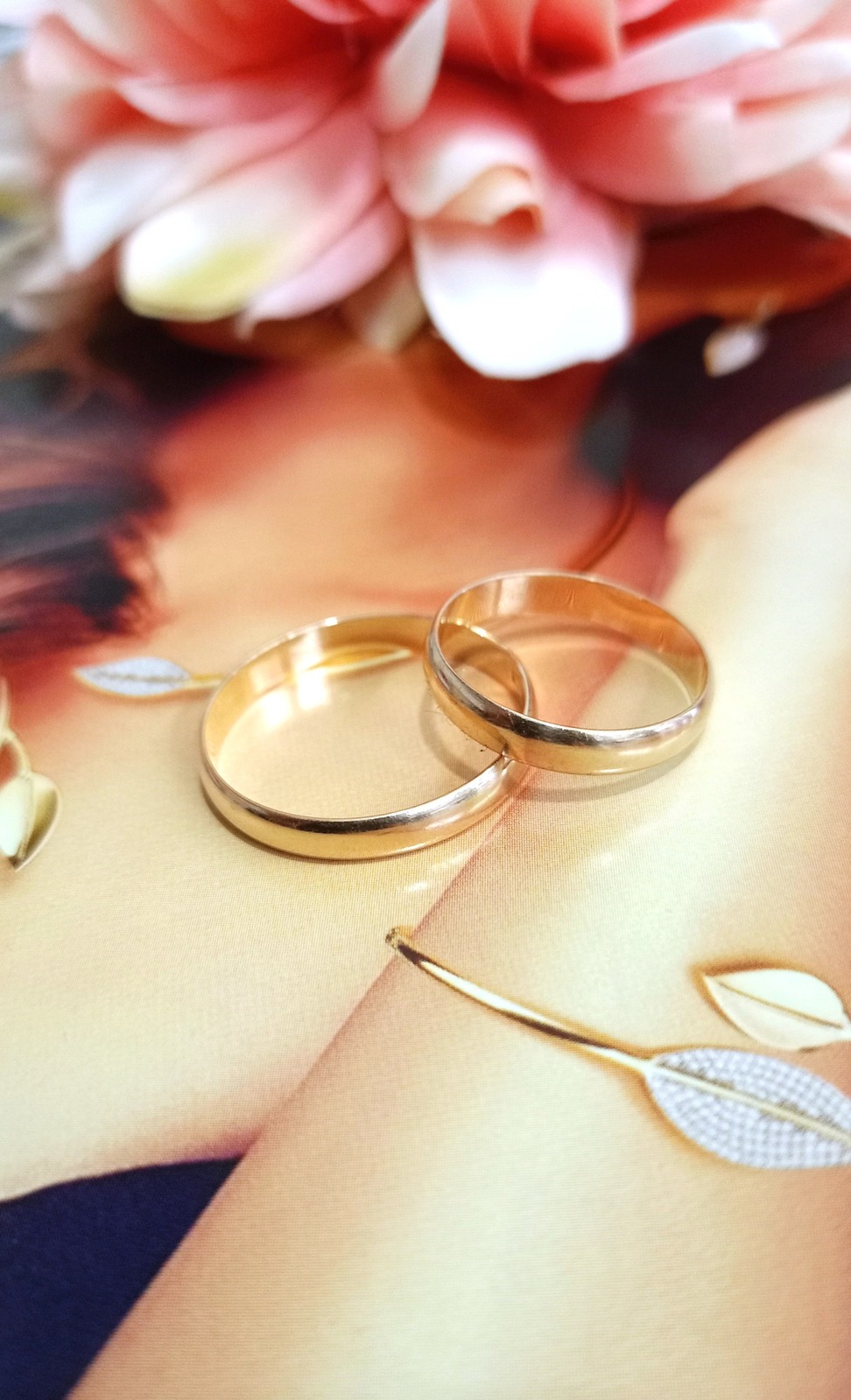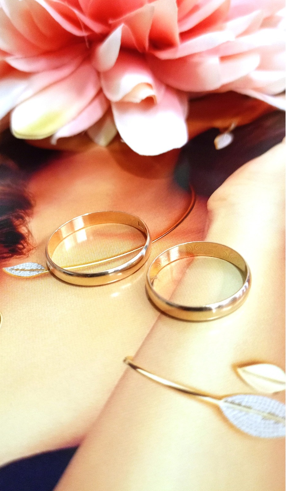 Oferujemy na sprzedaż komplet złotych obrączek wykonany z 14-karatowego (p.585) żółtego złota.