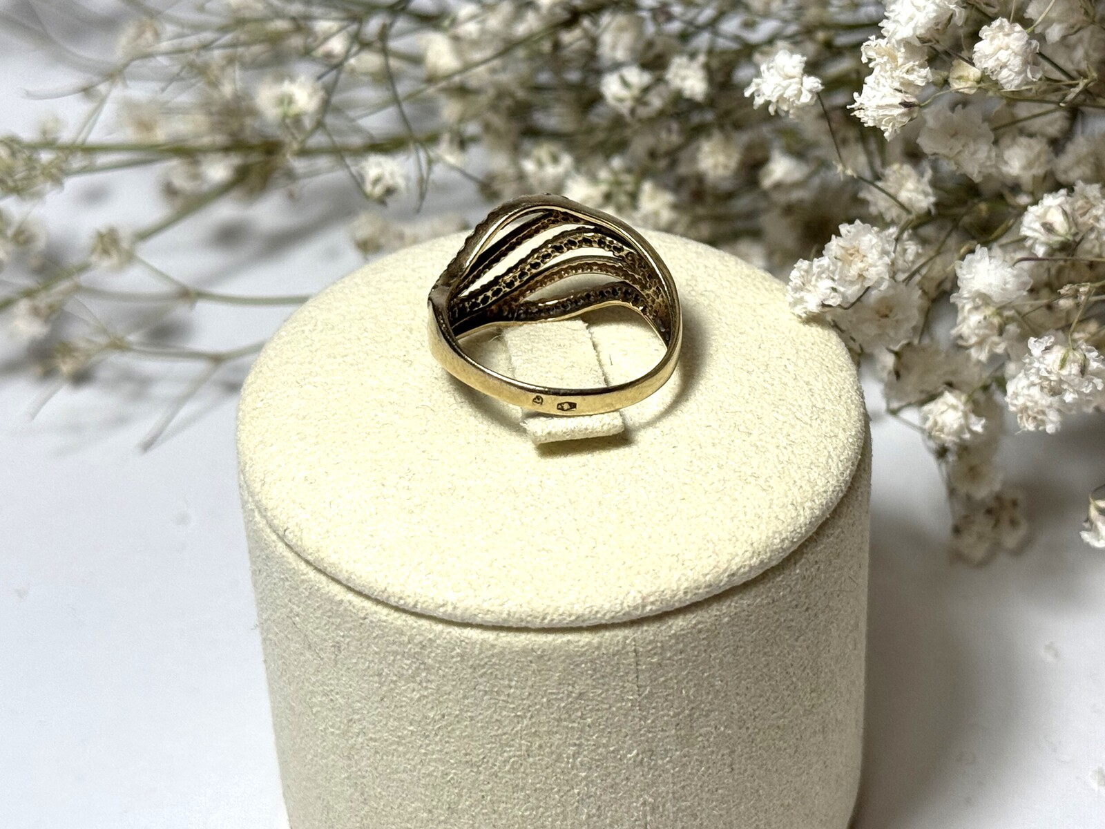 Oferujemy na sprzedaż złoty pierścionek wykonany z 9-karatowego (p.375) różowego złota.