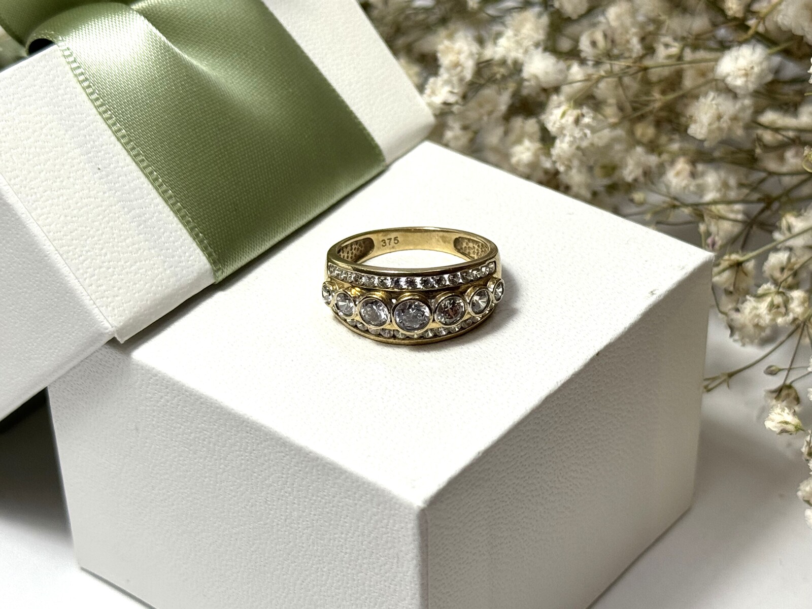 Oferujemy na sprzedaż złoty pierścionek wykonany z 9-karatowego (p.375) żółtego złota.