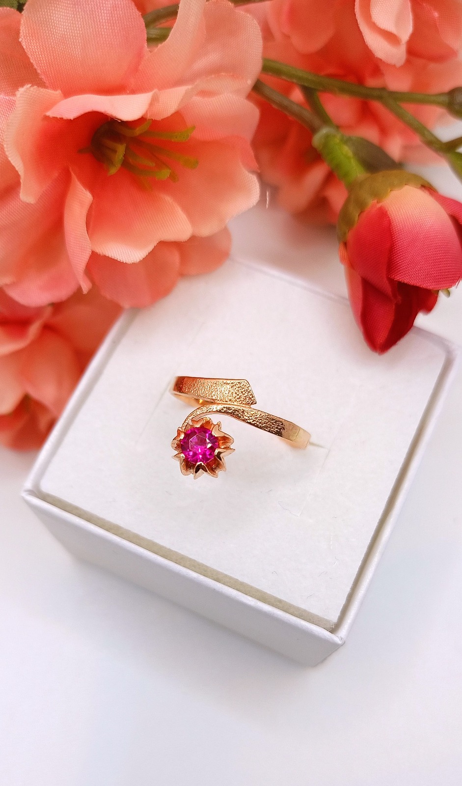 Oferujemy na sprzedaż złoty pierscionek wykonany z 14-karatowego (p.583) różowego złota.