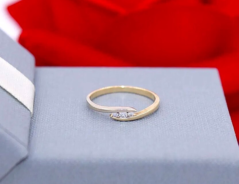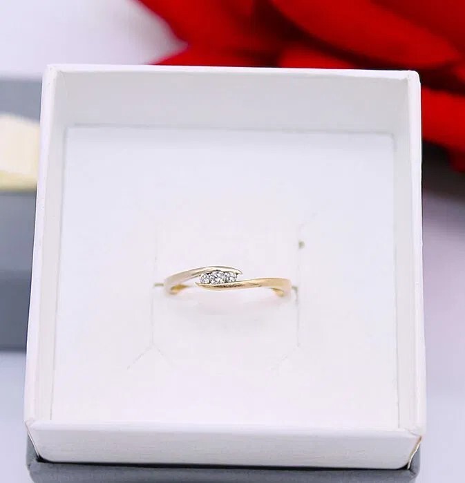 Oferujemy na sprzedaż złoty pierścionek z cyrkoniami, wykonany z 14-karatowego (p.583) żółtego i białego złota.