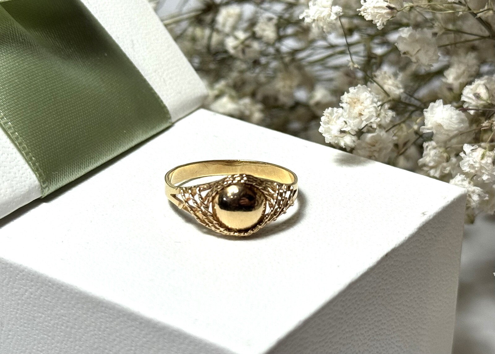 Oferujemy na sprzedaż złoty pierścionek wykonany z 14-karatowego (p.585) różowego złota.