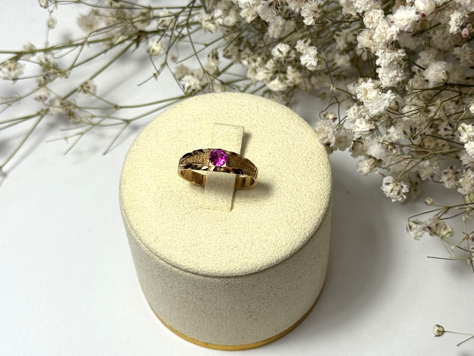 Oferujemy na sprzedaż złoty pierścionek wykonany z 14-karatowego (p.585) różowego złota.