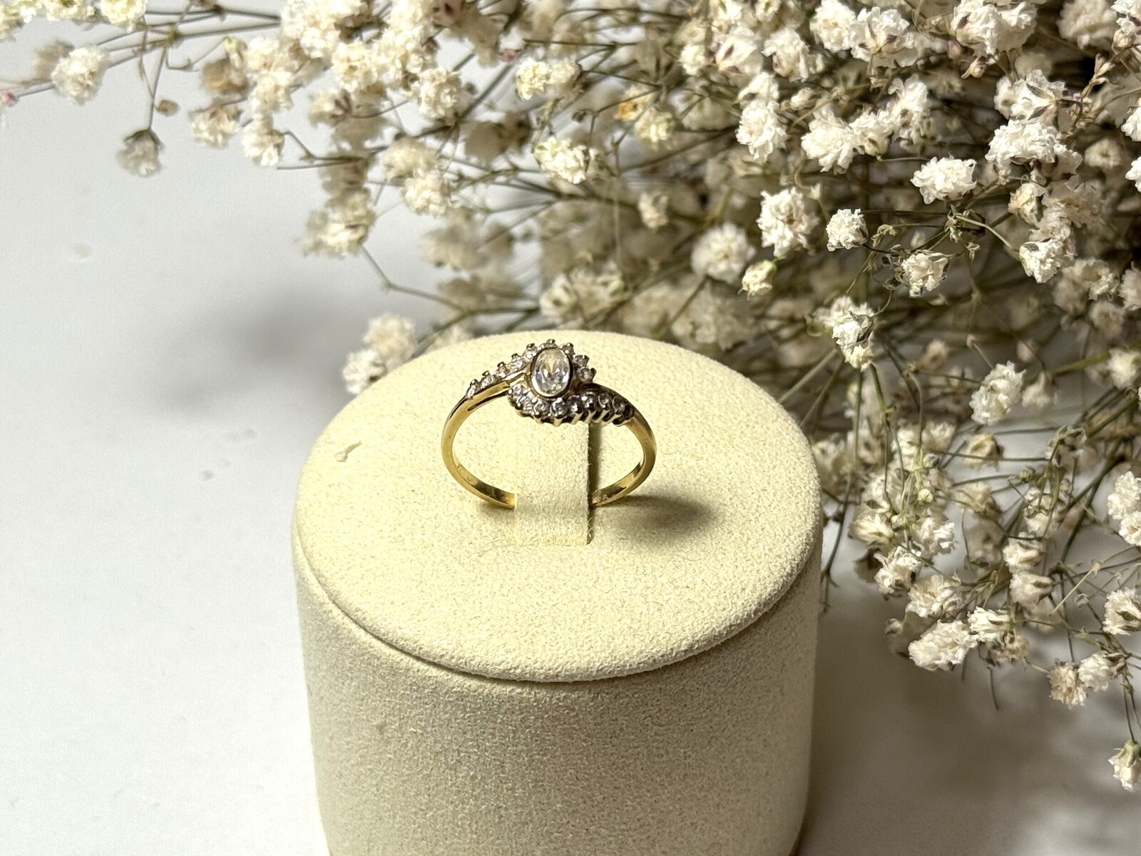 Oferujemy na sprzedaż złoty pierścionek wykonany z 14-karatowego (p.585) żółtego złota.