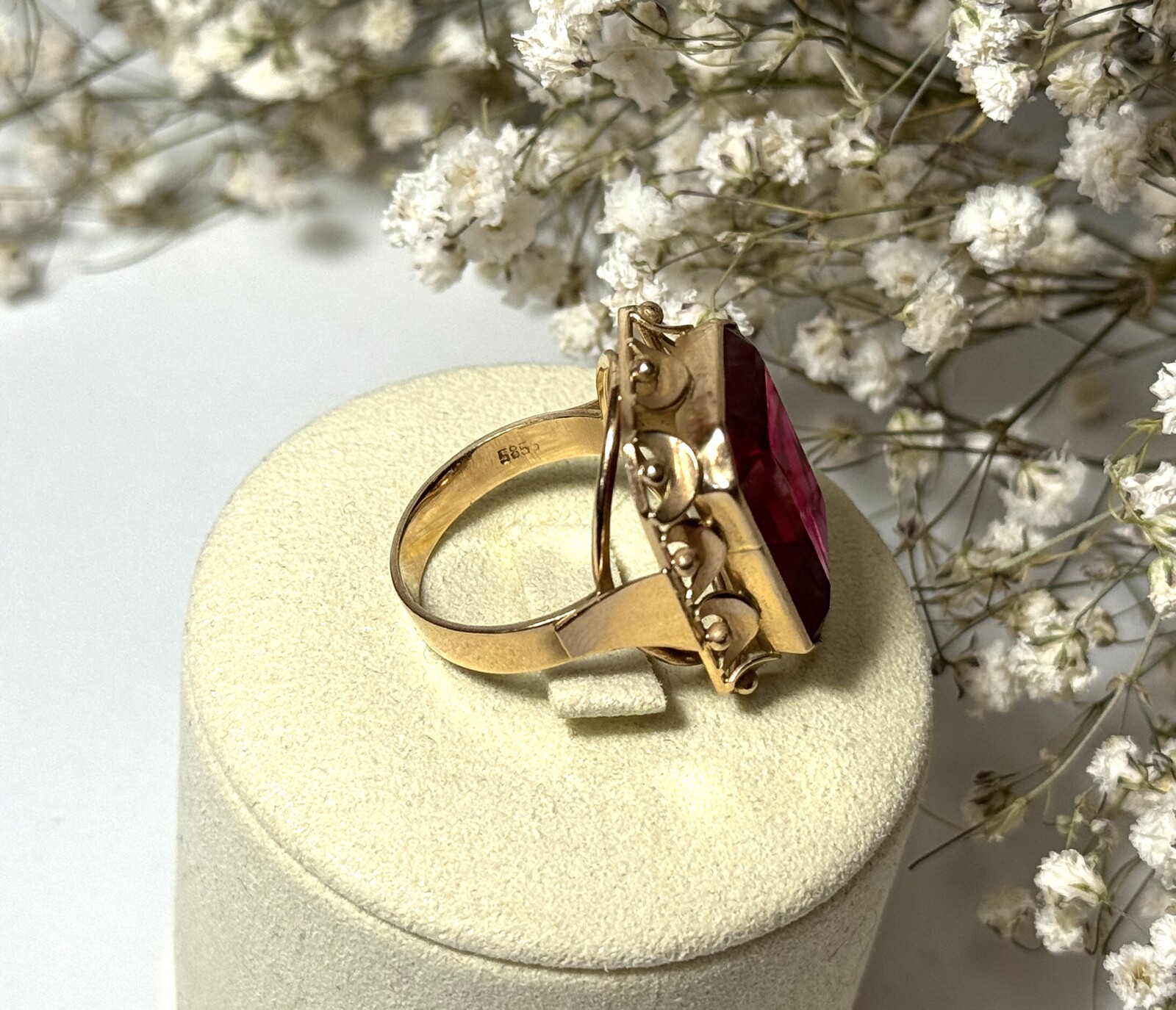 Oferujemy na sprzedaż złoty pierścionek wykonany z 14-karatowego (p.585) różowego złota.