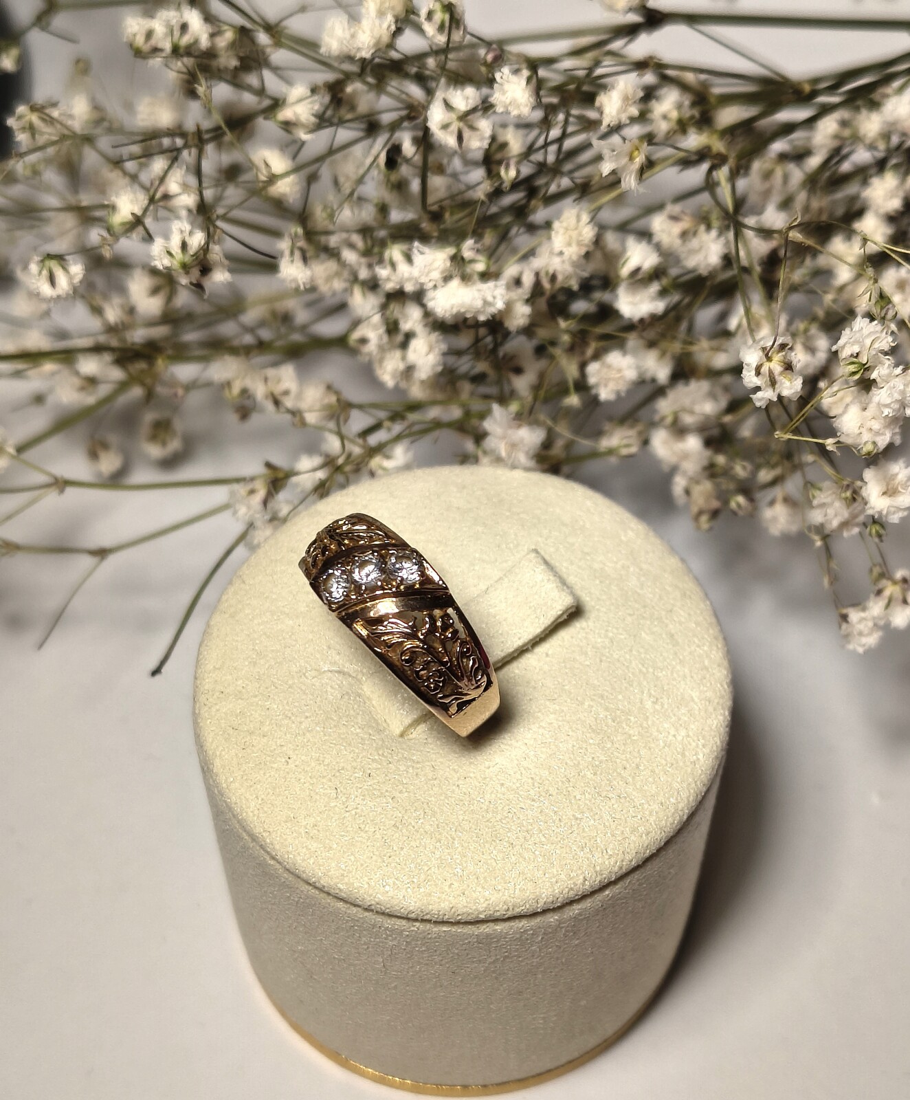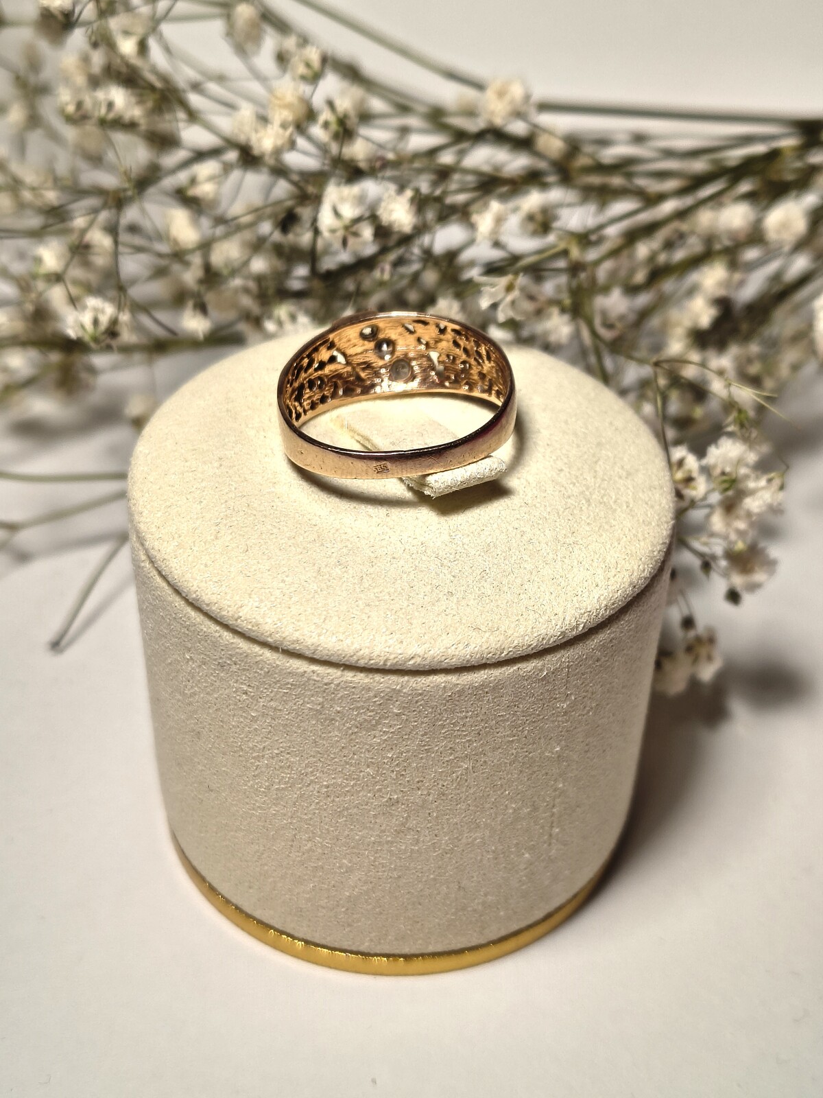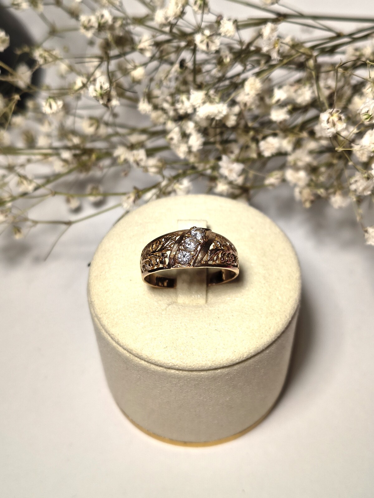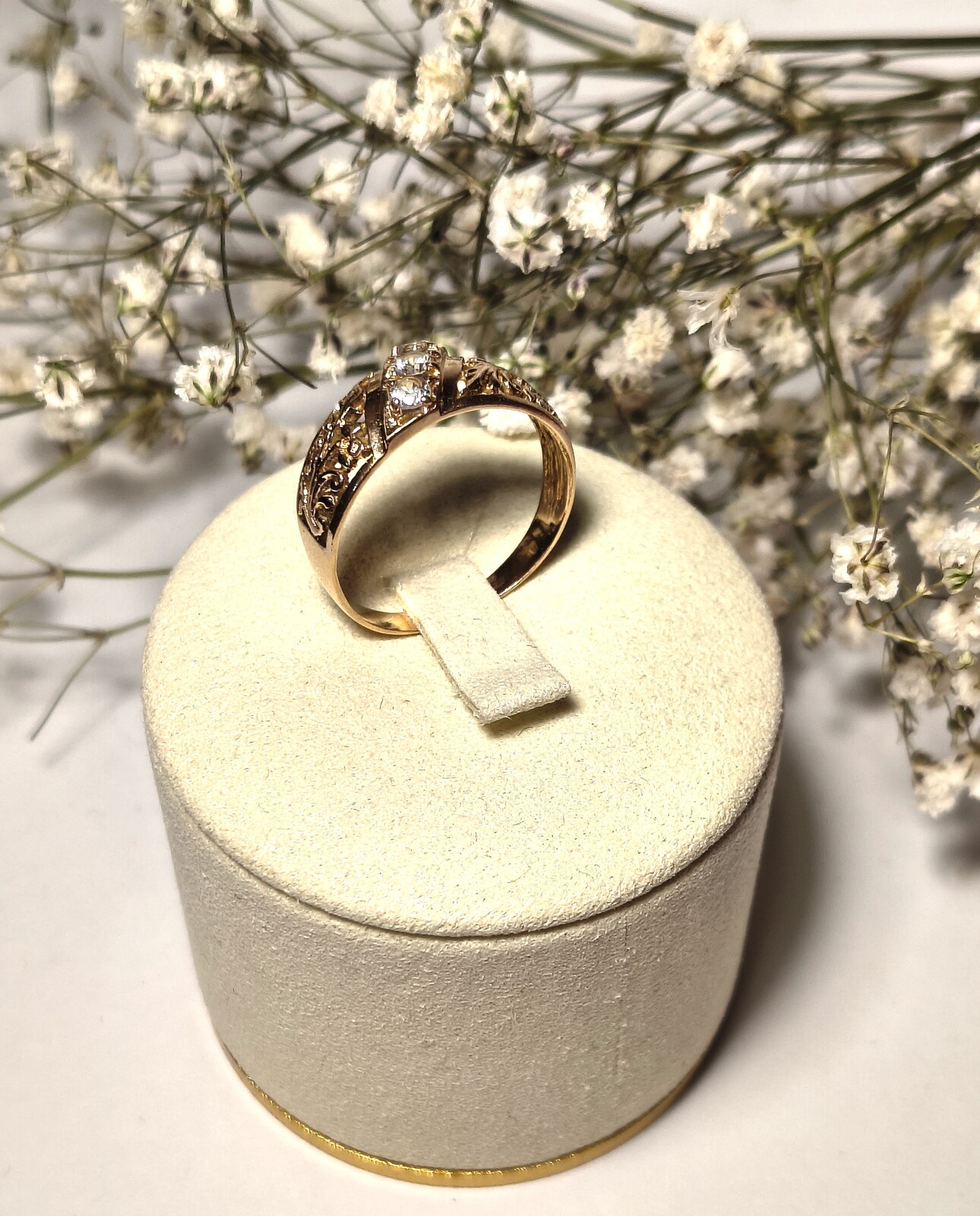 Oferujemy na sprzedaż złoty pierścionek wykonany z 14-karatowego (p.585) żółtego złota.