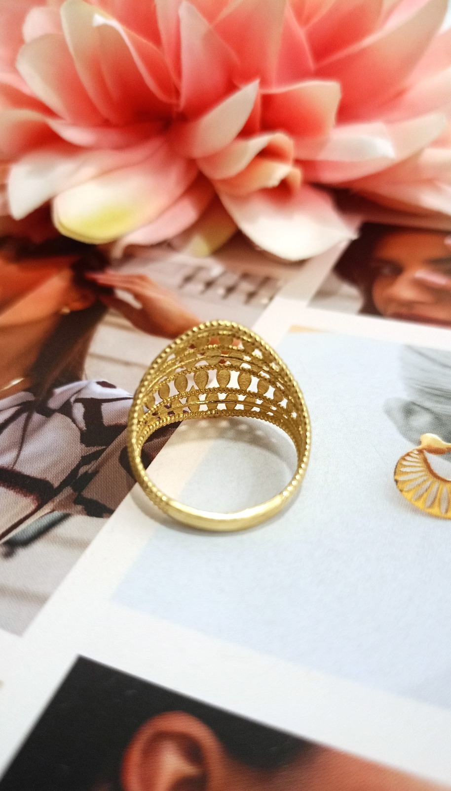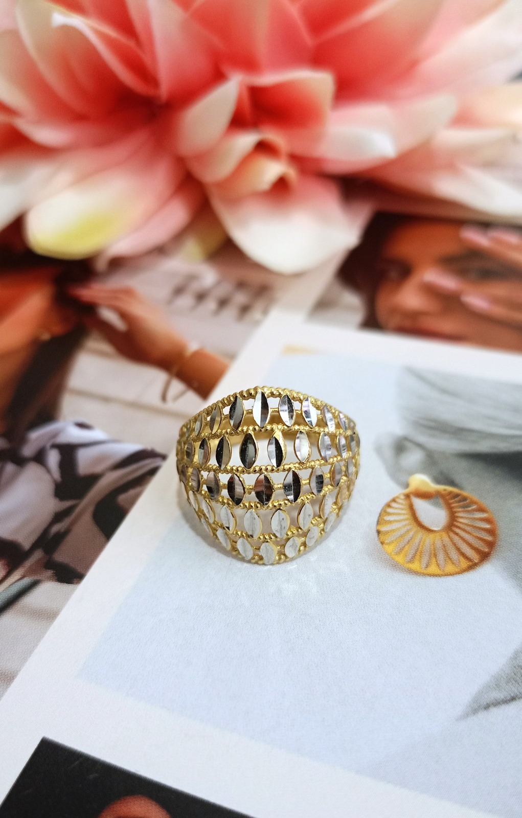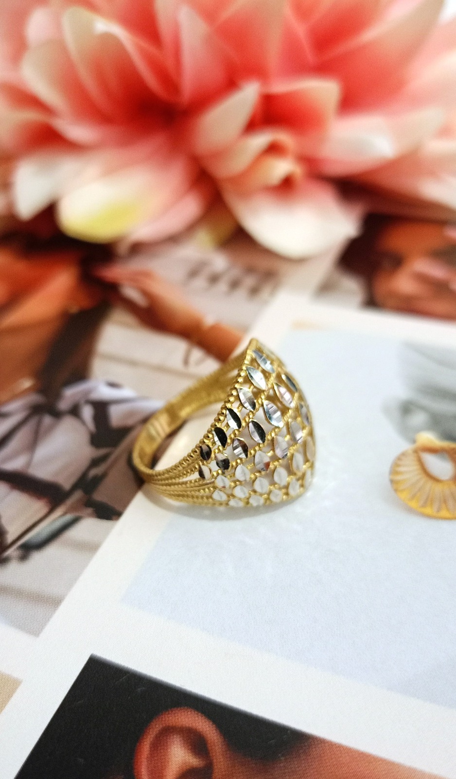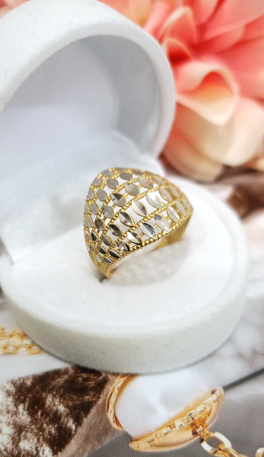 Oferujemy na sprzedaż złoty pierścionek wykonany z 14-karatowego (p.585) żółtego i białego złota.