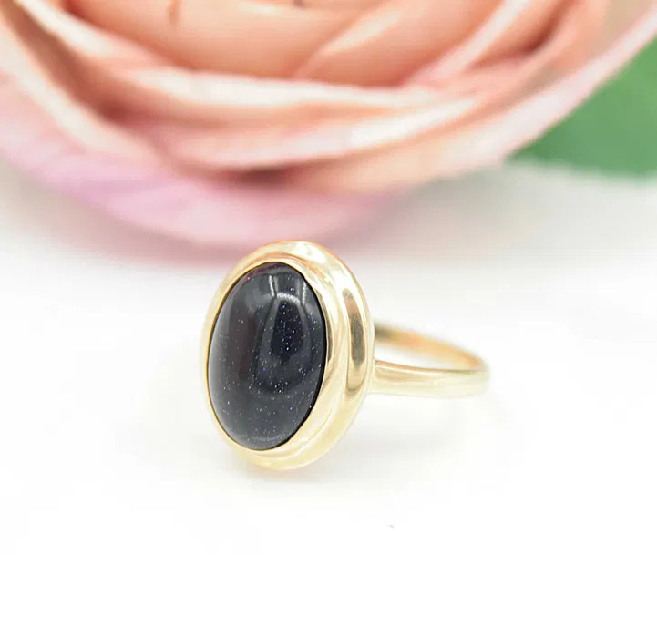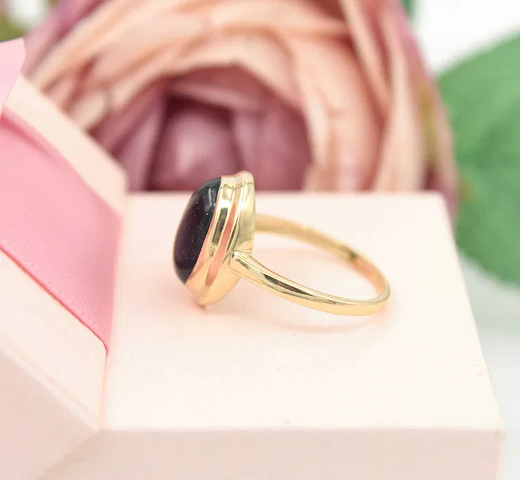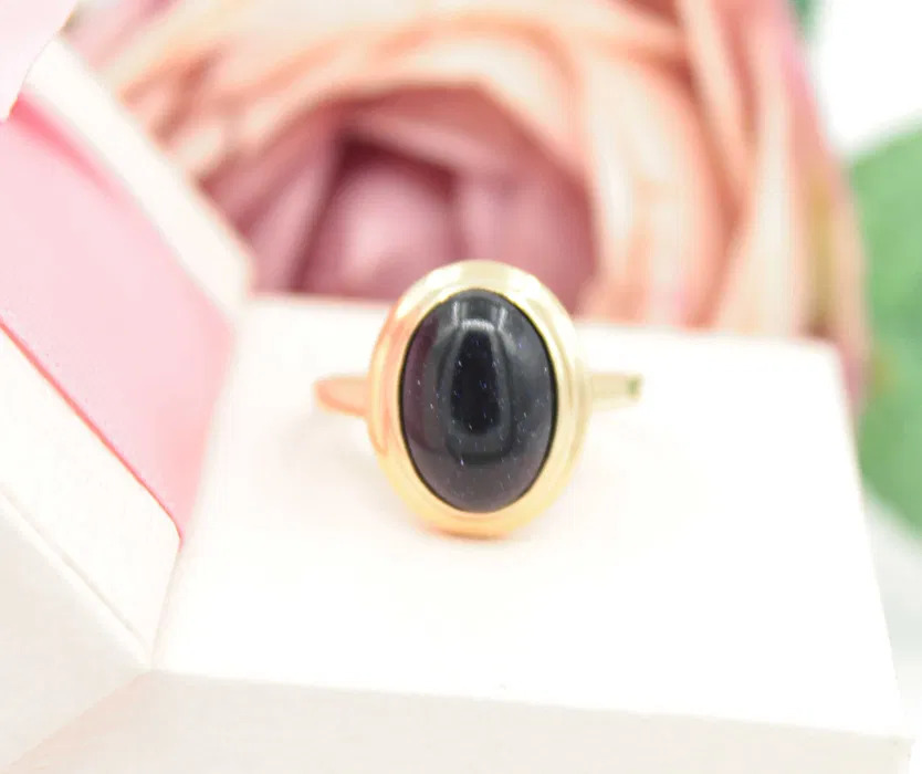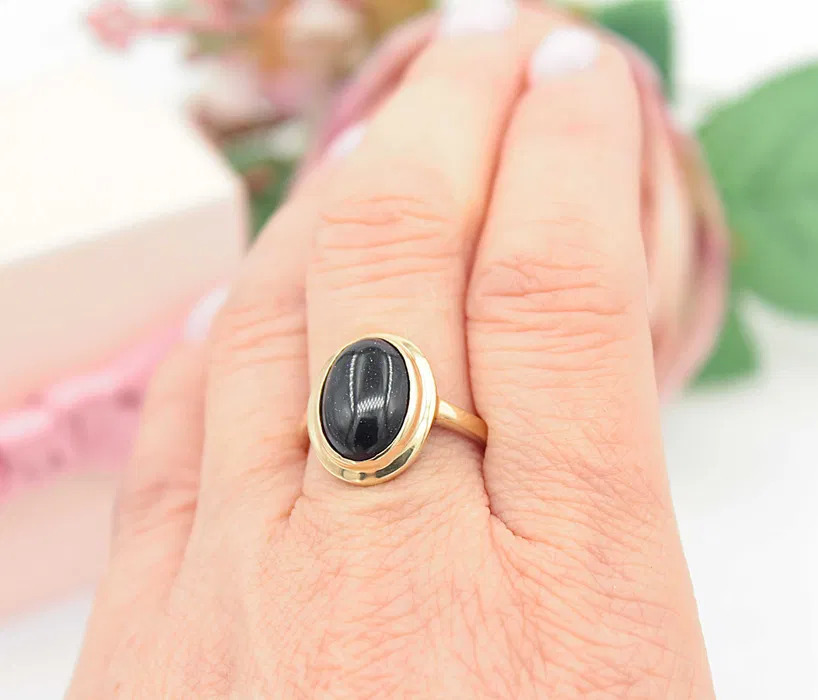 Oferujemy na sprzedaż złoty pierścionek z kamieniem "Noc Kairu", wykonany z 14-karatowego (p.583) żółtego złota