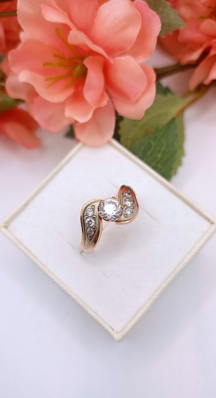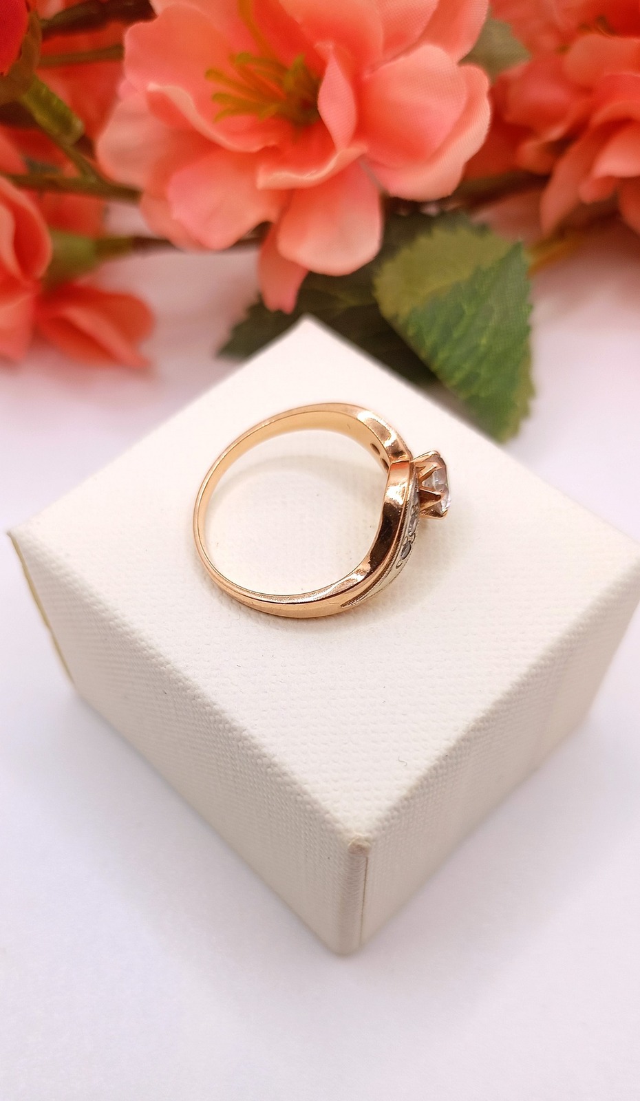 Oferujemy na sprzedaż złoty pierścionek wykonany z 14-karatowego (p.585) różowego złota.