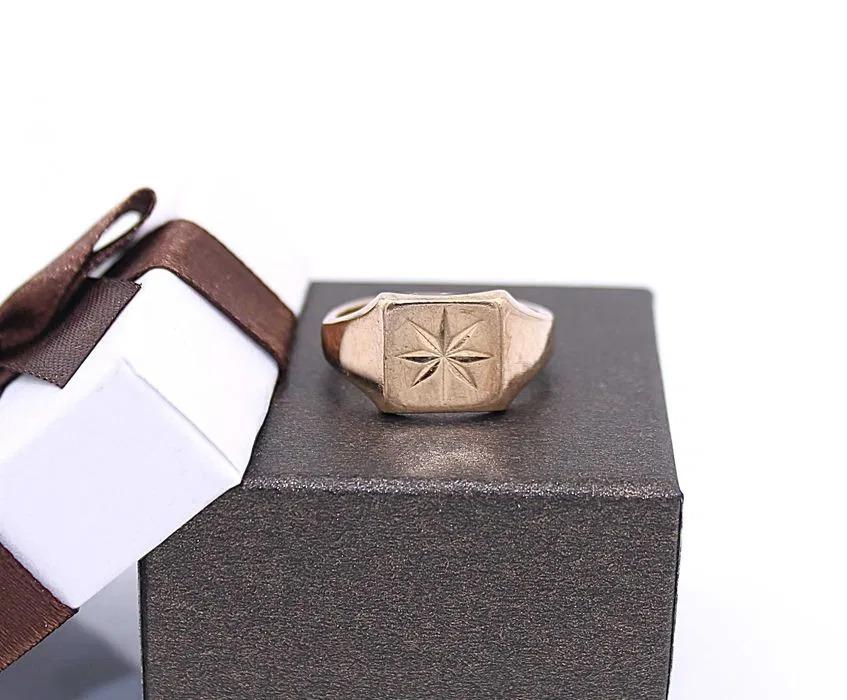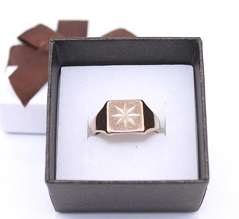 Oferujemy na sprzedaż złoty sygnet wykonany z 9-karatowego (p.375) żółtego złota.