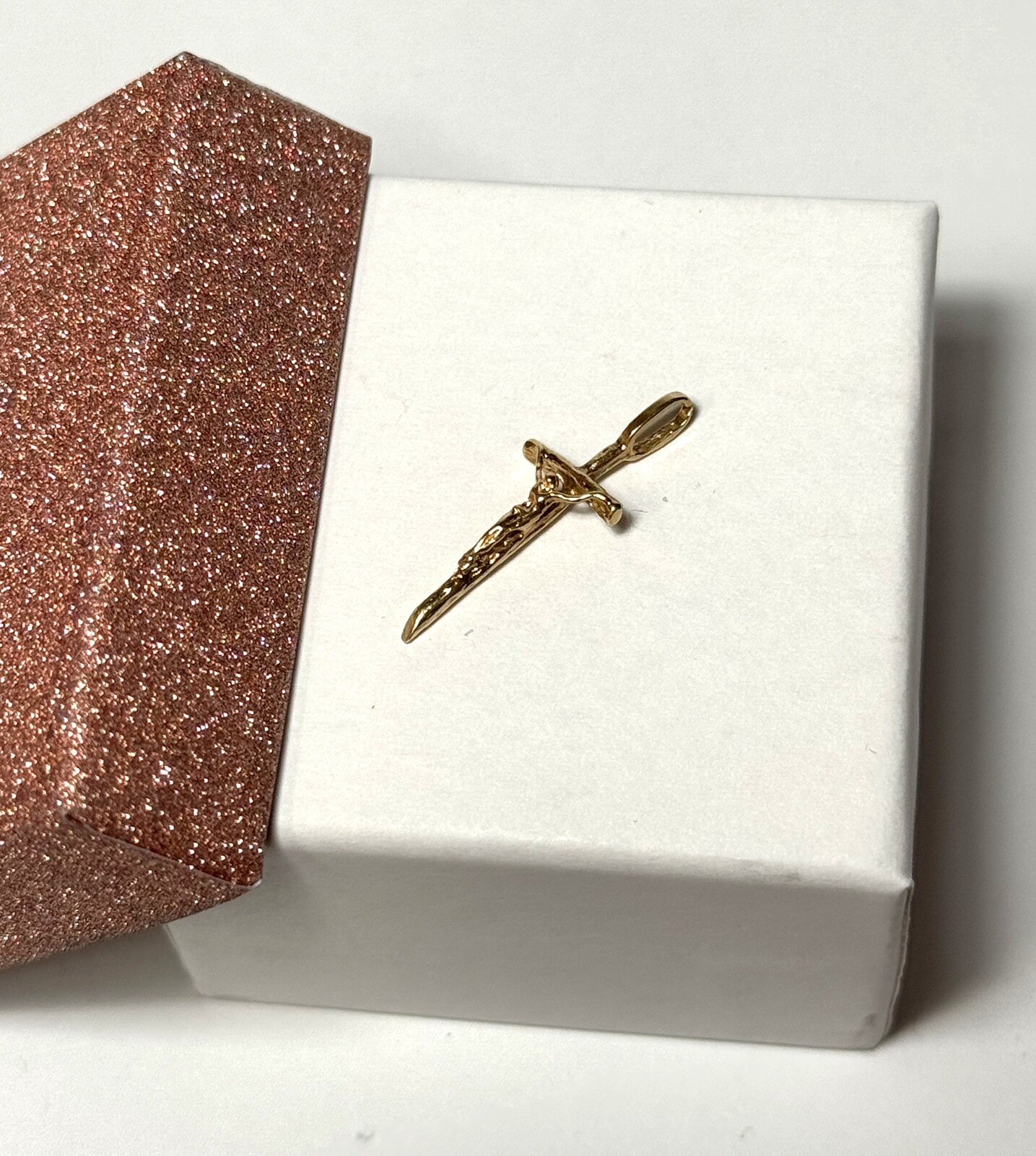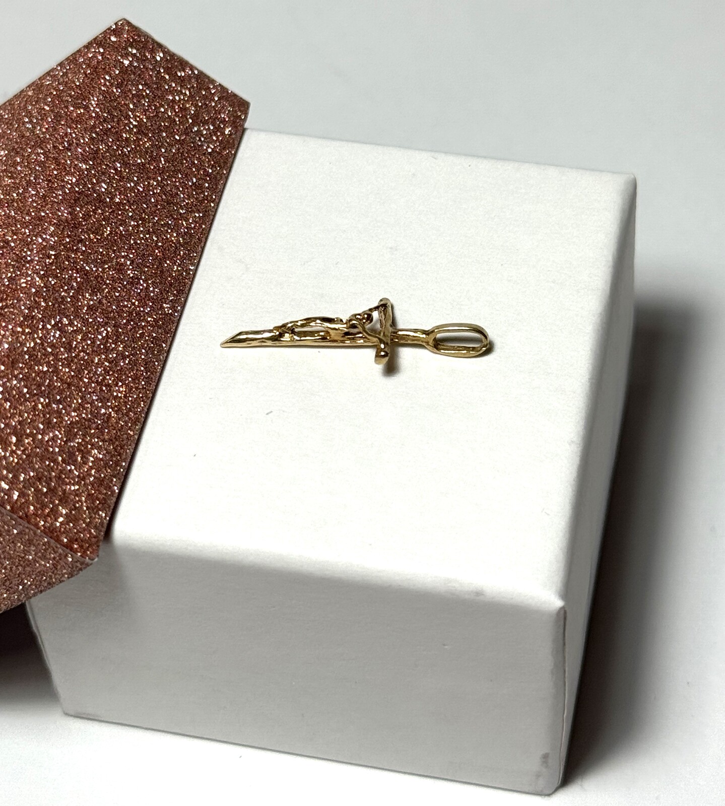 Oferujemy na sprzedaż złotą zawieszkę wykonanąy z 14-karatowego (p.585) żółtego złota.
