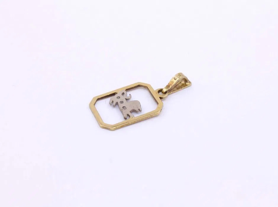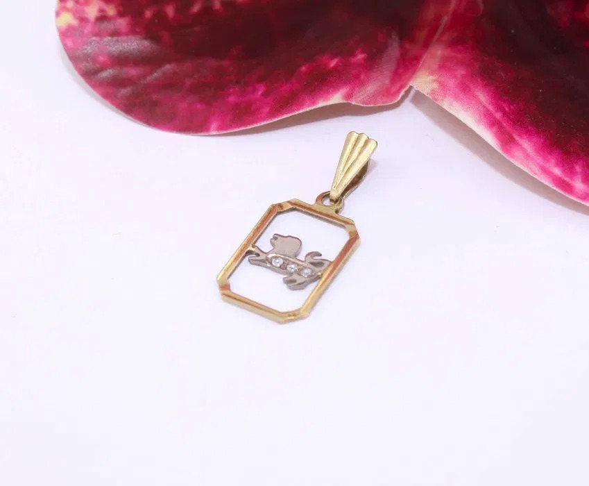 Oferujemy na sprzedaż złotą zawieszkę wykonaną z 14-karatowego (p.585) żółtego i białego złota.