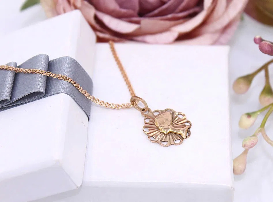 Oferujemy na sprzedaż złotą zawieszkę wykonaną z 14-karatowego (p.585) różowego złota.