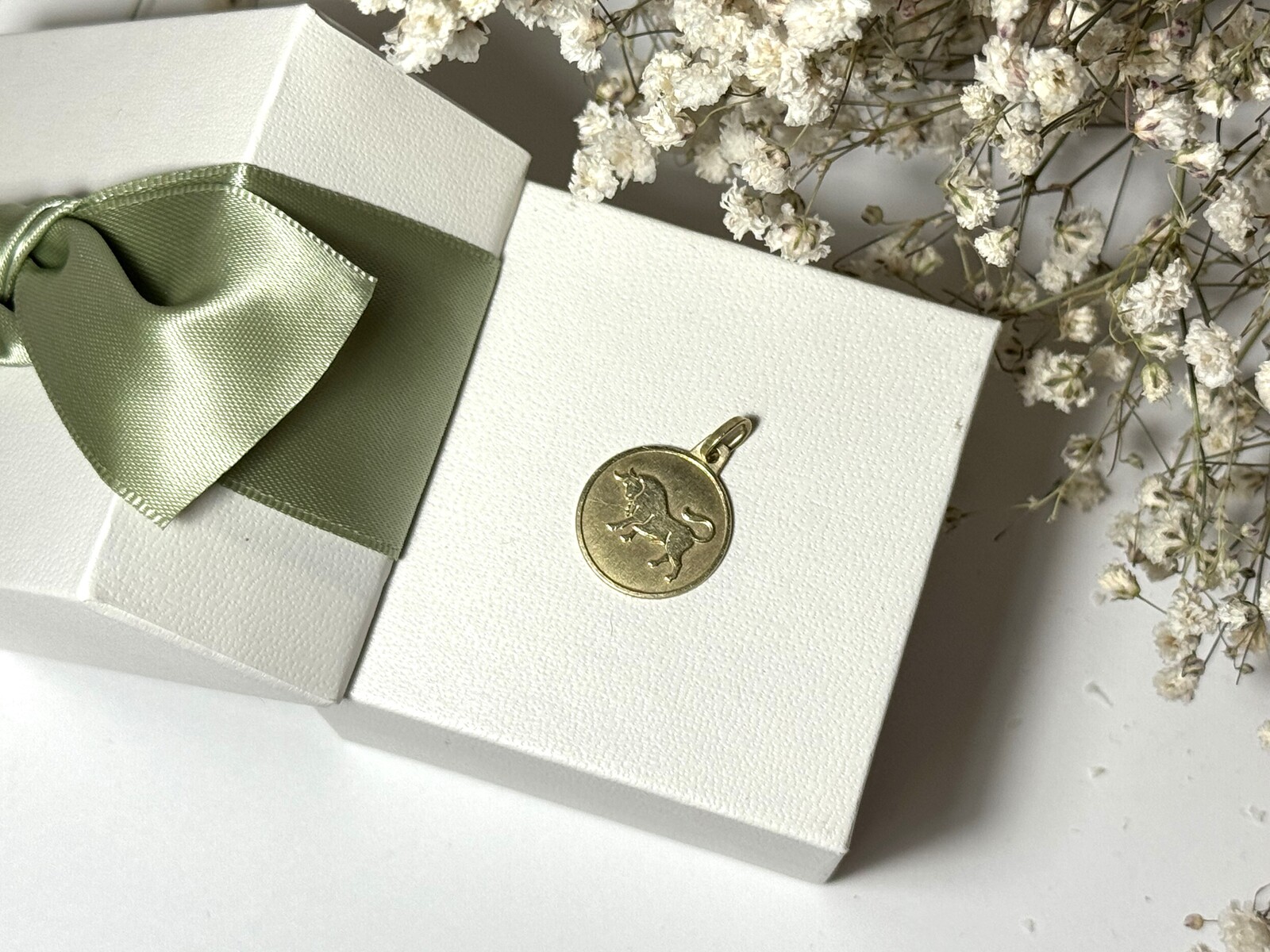 Oferujemy na sprzedaż złotą zawieszkę wykonaną z 14-karatowego (p.585) żółtego złota.