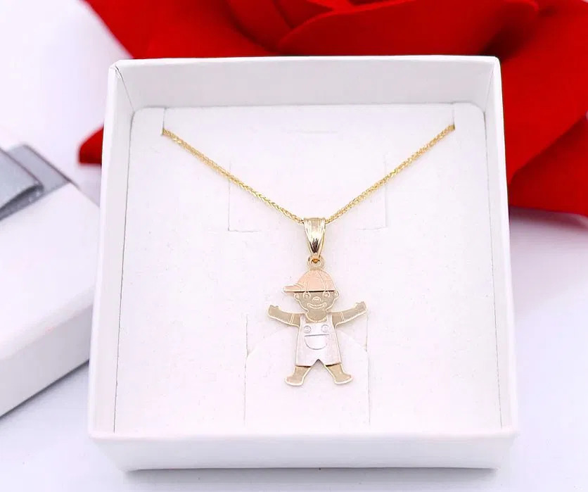 Oferujemy na sprzedaż złotą zawieszkę wykonaną z 14-karatowego (p.585) żółtego, białego i różowego złota.
