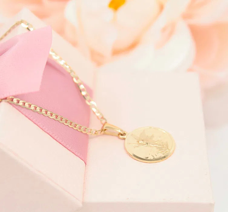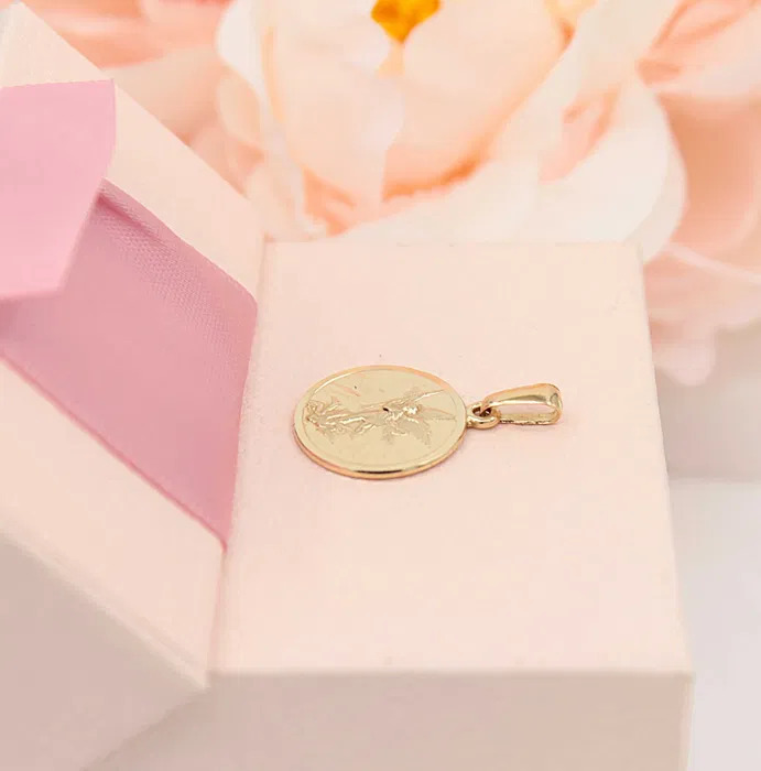 Oferujemy na sprzedaż złotą zawieszkę wykonaną z 14-karatowego (p.585) żółtego złota.