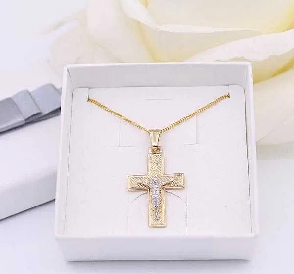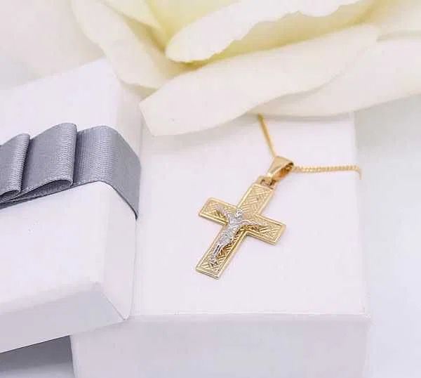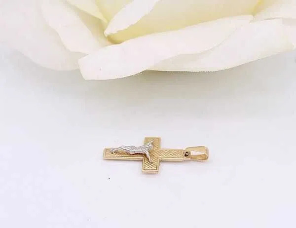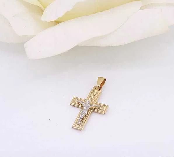 Oferujemy na sprzedaż złotą zawieszkę wykonaną z 14-karatowego (p.585) żółtego i białego złota.