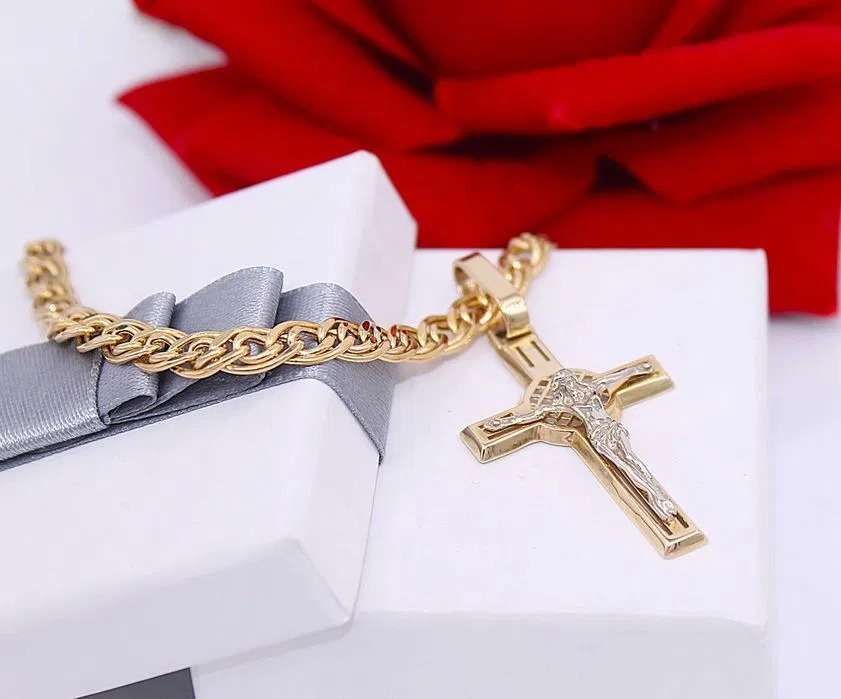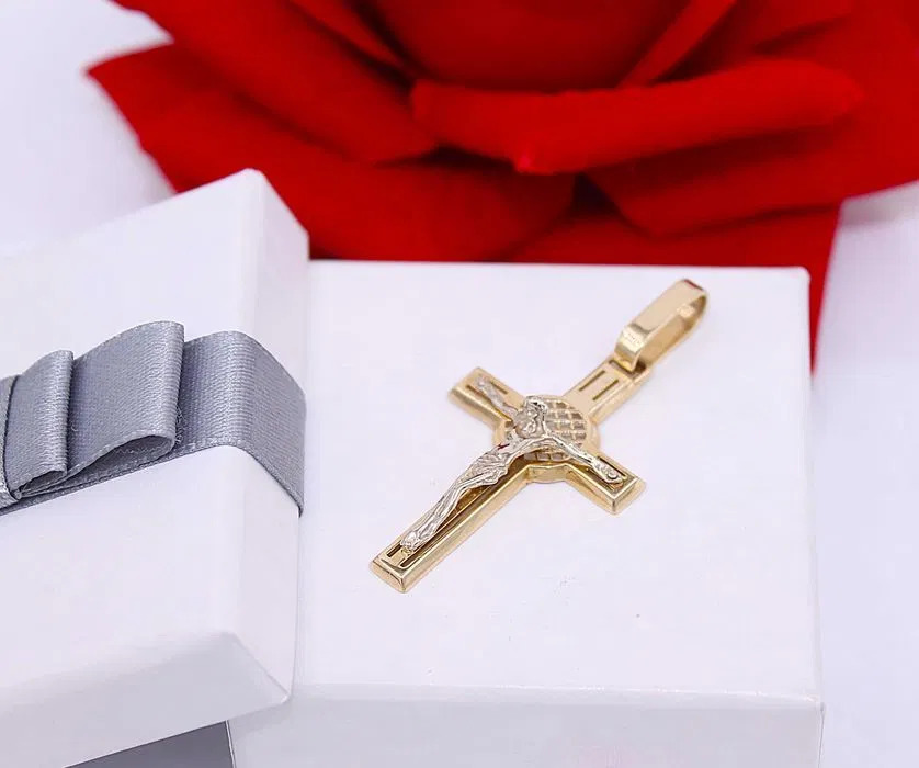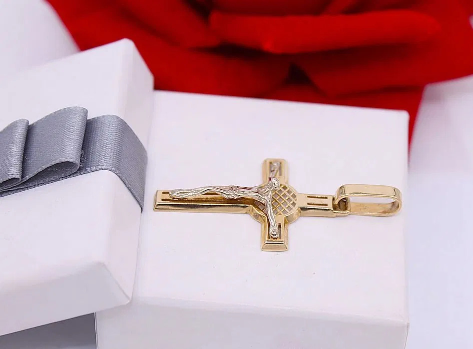 Oferujemy na sprzedaż złotą zawieszkę wykonaną z 14-karatowego (p.585) żółtego i białego złota.